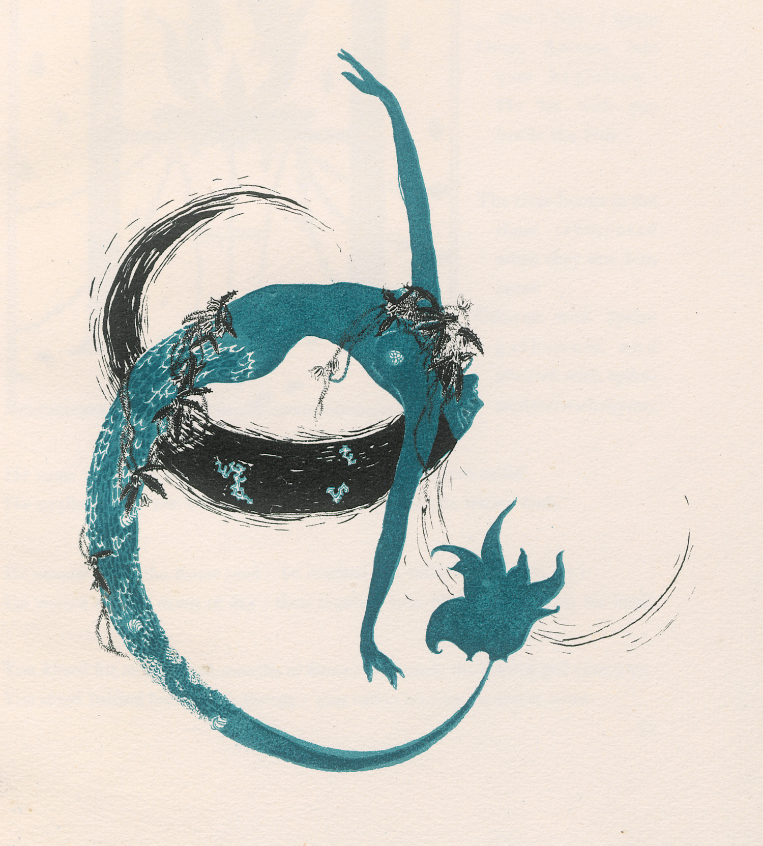 Alastair. - Wilde, Oscar. The Sphinx. 1 Bl., 34 S., Mit 13 farbigen Initialen und 10 (2 als fl. Vorsätze) mit Türkis kolorierten Tafeln von Alastair. 30 x 22 cm. In Golddruck illustr. OLeinenband (Einbandillustration von Charles Ricketts; etwas unfrisch und stärker gebräunt). London und New York, J. Lane, 1920.
