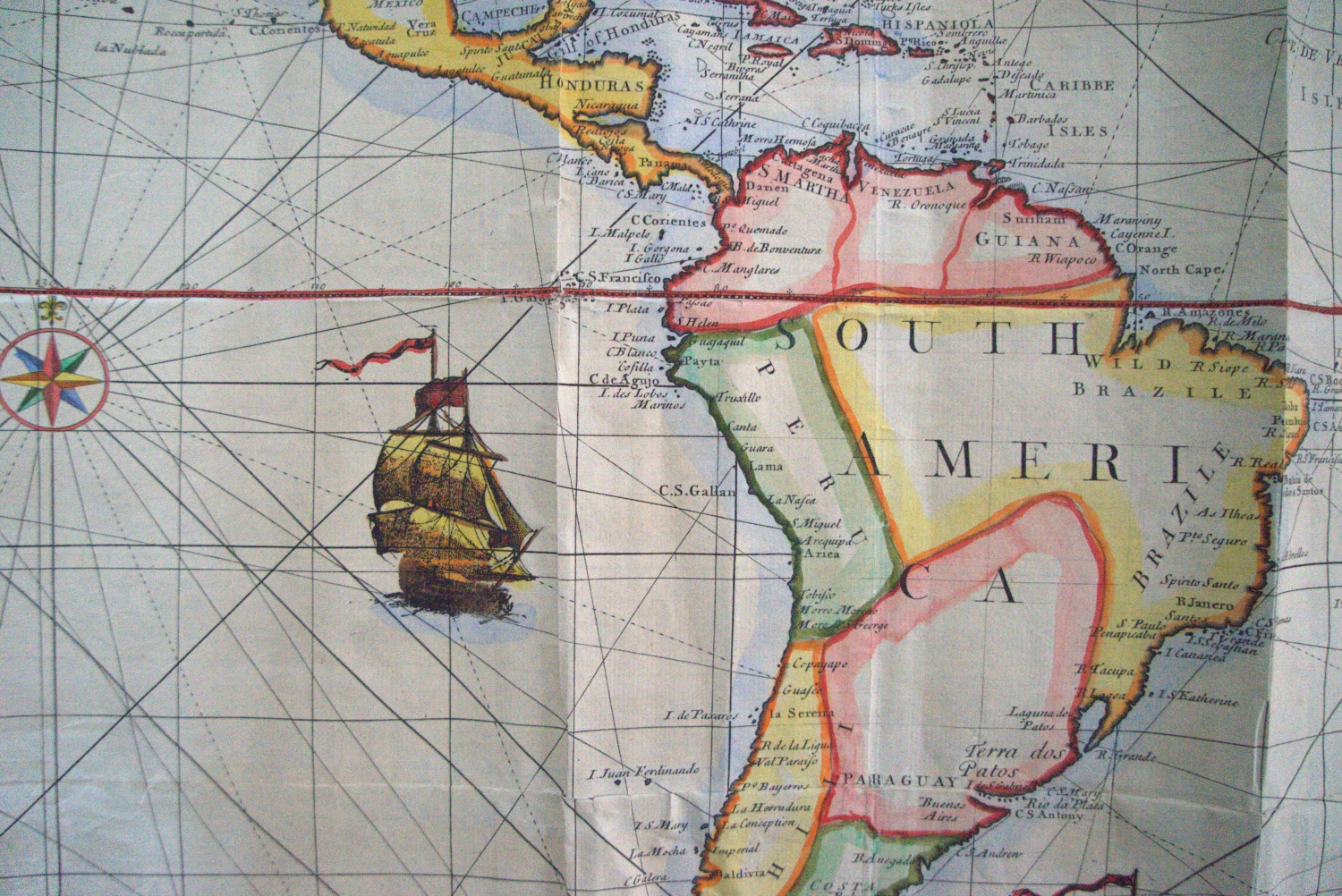 Senex, John. A correct sea chart of the whole world, according to wright's, commonly called Mercator's Projection. Kolorierte Kupferkarte von zwei Platten gedruckt und mit montierten kolorierten Kupferstichfragmenten. London, J. & J. Knapton, 1728.