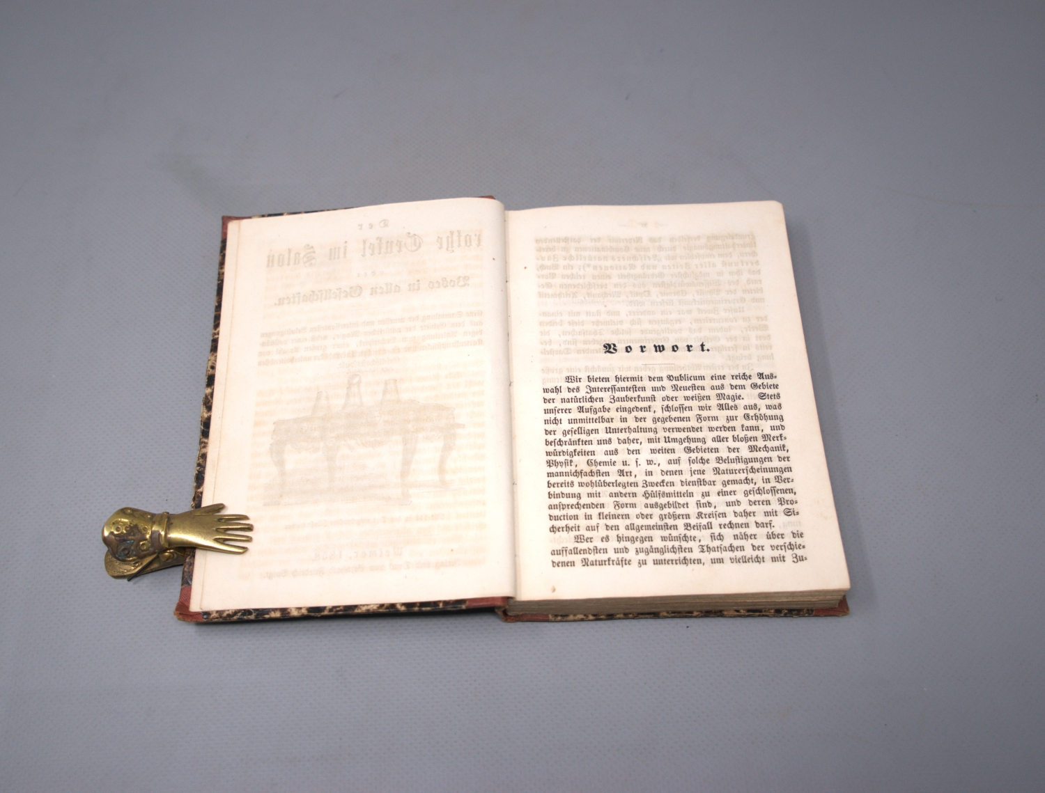 Clarke-Blind 67. Volkmann 146. – Erste Ausgabe. Mit Kapiteln zur kleinen und großen Zauberkunst, zur Kunst des Escamotierens, zu Kartenkunststücken und Gesellschaftsspielen. – Mit montiertem zeitgen. Etikett auf dem Innenspiegel. Papierbedingt gebräunt, insgesamt in guter Erhaltung.