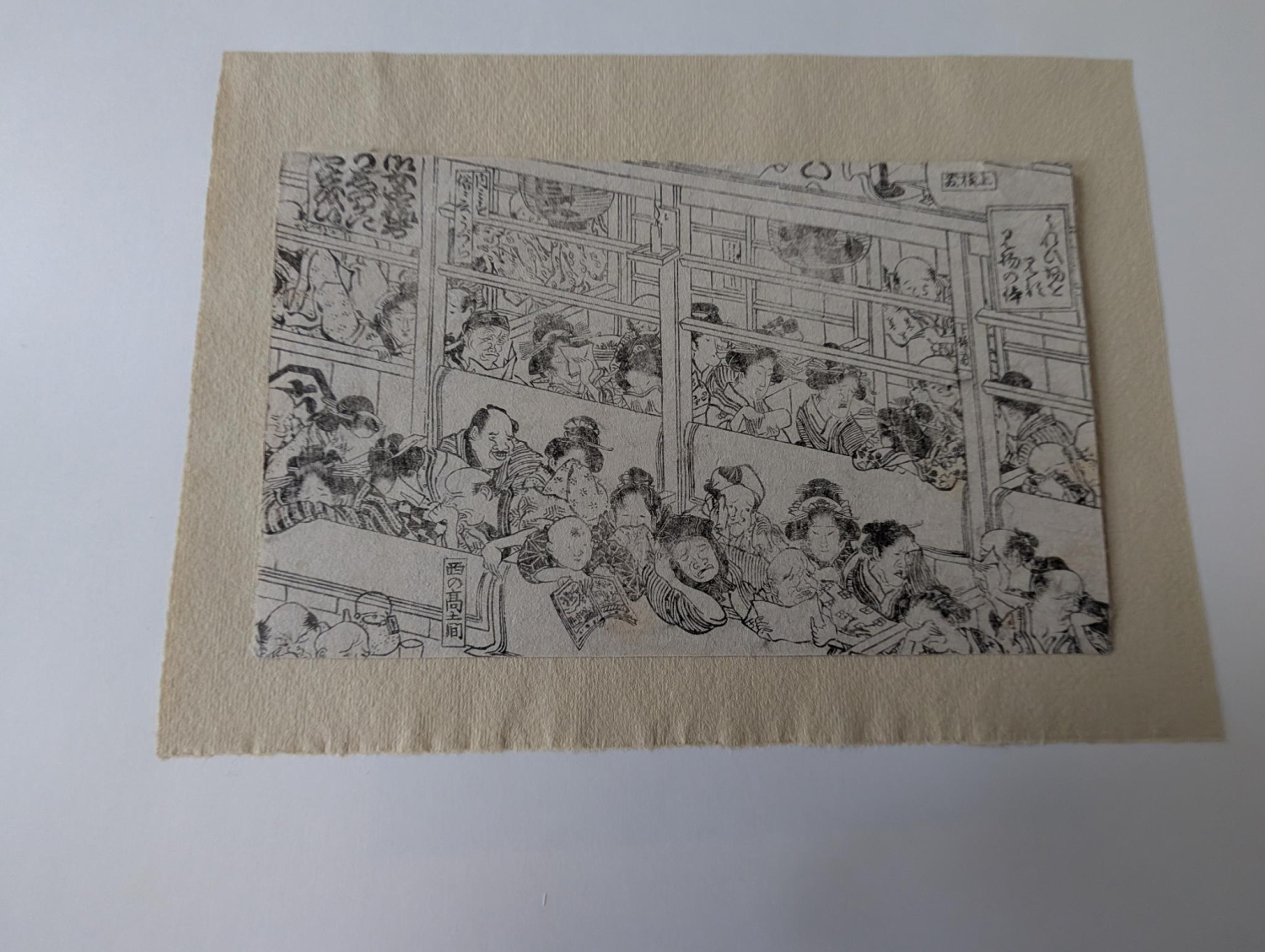 Konvolut japanischer Buchholzschnitte mit unterschiedlichen Genreszenen, darunter Darstellungen von speisenden Herren, Wanderern, Landarbeitern und weiteren Szenen aus dem Alltagsleben. – Unterschiedliche Altersspuren, insgesamt überwiegend gut erhalten.