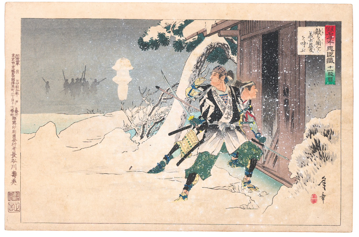 (aktiv 1887-1900)Folge von 12 Farbholzschnitte der Serie Kanadehon Chushingura (Die 47 Ronin).