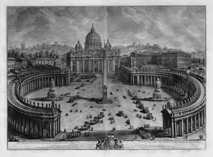 Eine feierliche Prozession mit Papst Pius VI. und zahlreichen, kirchlichen Würdenträgern im Inneren von St. Peter