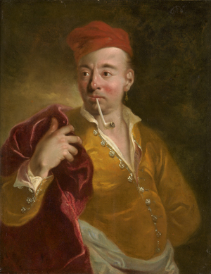 Bildnis eines Edelmanns mit roter Samtkappe und Ohring, rauchend