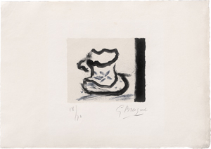 Blatt 6 (von 15) der Serie für Joan Prats. Dieser war eng mit Max Ernst, Paul Klee, Joan Brossa und Joan Miró befreundet, und er war ein leidenschaftlicher Verfechter der katalanischen Kunst. Herausgegeben von Polígrafa, Barcelona, in einer Gesamtauflage von 113 Exemplaren. Prachtvoller Druck mit dem vollen, sehr breiten Rand.