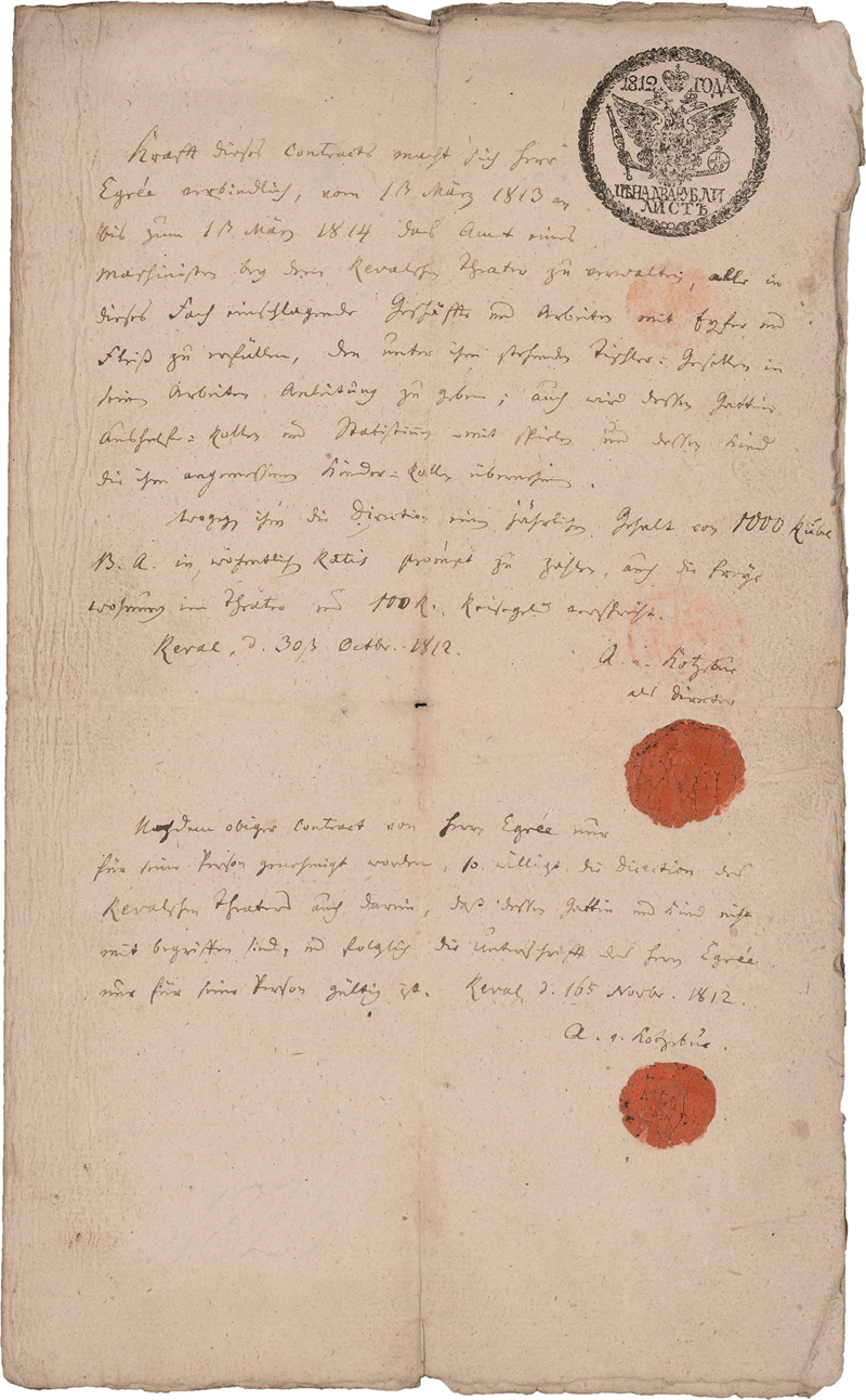 (1761-1819)Engagementsvertrag für einen Bühnenmeister. 1812