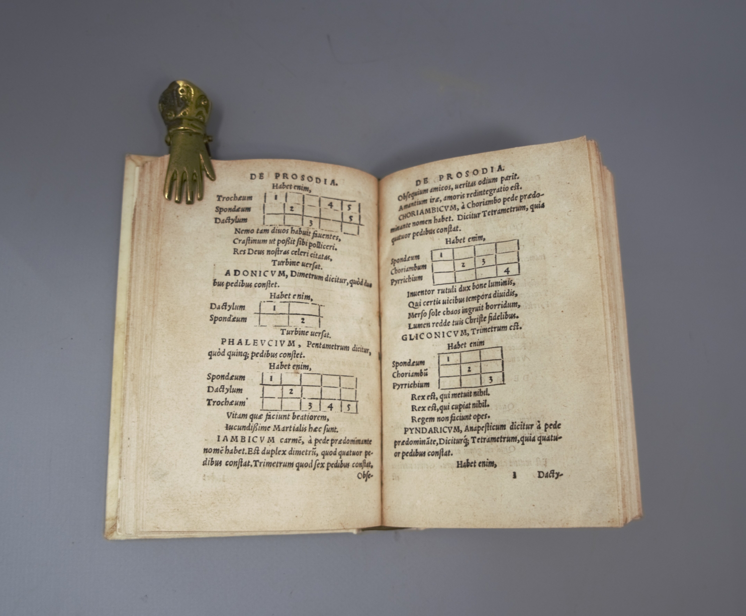 VD16 ZV 14587. – Seltene Kölner Ausgabe der lateinischen Grammatik des bekannten Kirchenreformators Johannes Spangenberg (1484-1550), der in Stolberg im Harz Rektor der Lateinschule war, das Schulwesen aufbaute und den Südharz reformierte. – Titel und letztes Blatt fleckig und mit hs. Bemerkungen alter Hand, Titel mit Hinterlegung. Die mittleren Lagen mit größerem Wasserfleck. Ingesamt ordentliches Exemplar.