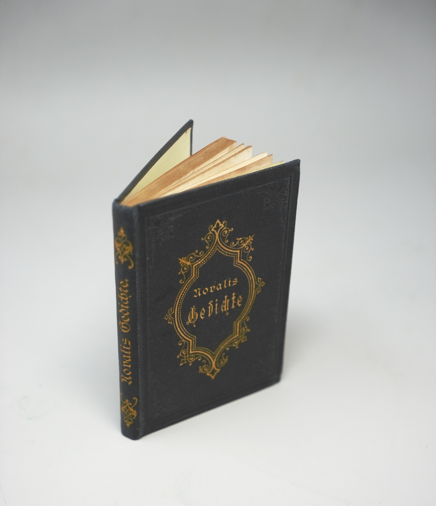 Novalis (d. i. Friedrich von Hardenberg). Gedichte. 2 Bl., 138 S., 1 Bl. Mit gestochenem Portrait. 13 x 8,5 cm. Dunkelgrüner blindgeprägter OLeinenband mit goldgeprägtem Rücken- und Deckeltitel sowie Goldschnitt. Berlin, Georg Reimer, 1857.
