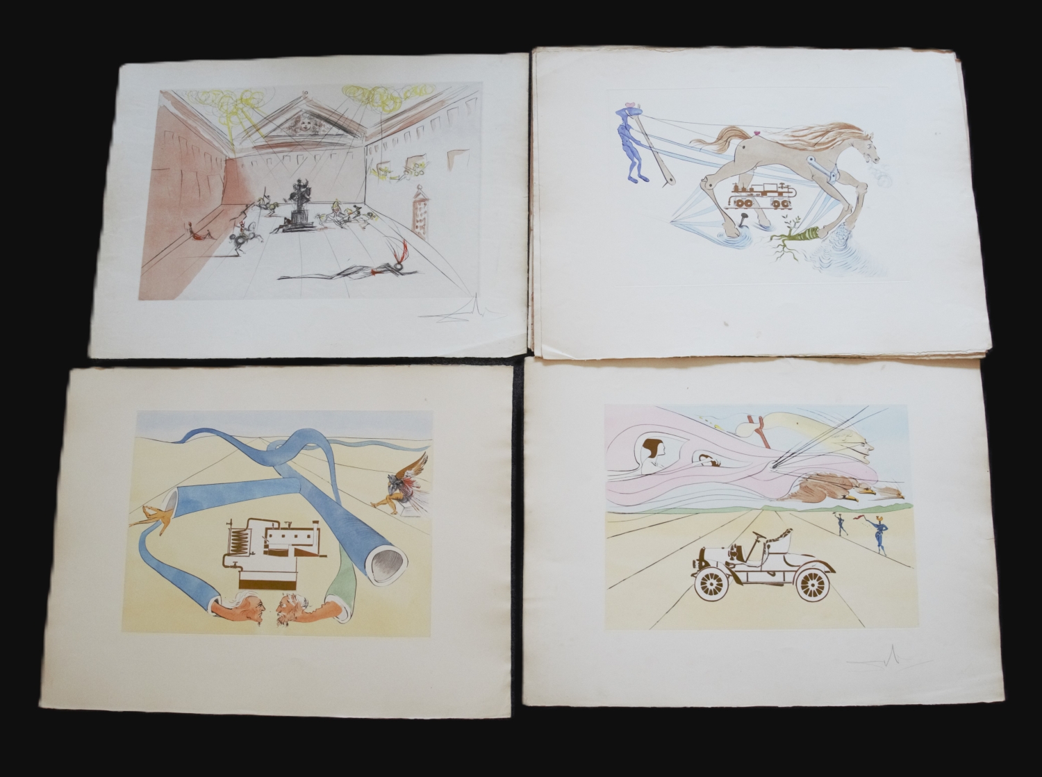 Die Graphiken zeigen unterschiedliche abstrakte Szenerien in kräftigen Farben, teilweise mit bekannten Motiven, wie der zerlaufenden Uhr oder der Erzengel Michael. – Vereinzelt mit kleineren Fehlstellen am Rand, Randläsionen und kleinen Gebrauchsspuren. Alle signiert, jedoch teilweise nicht vom Künstler.