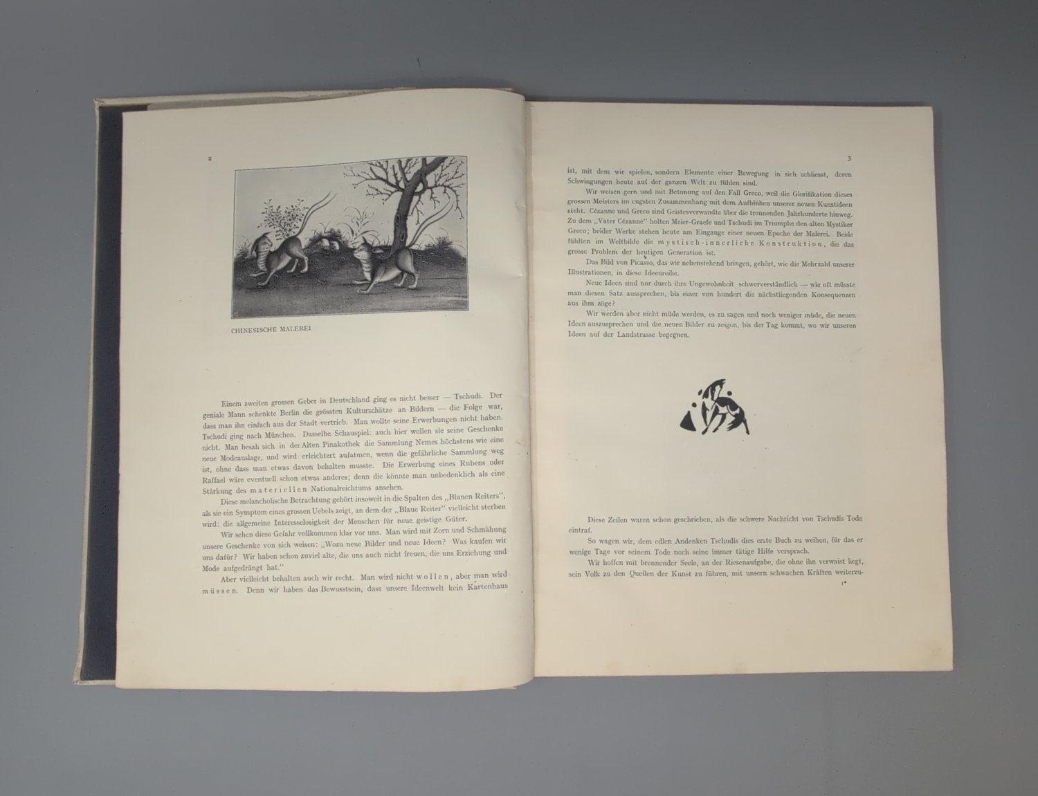 "Die Herausgeber Marc und Kandinsky verstanden den Almanach als das Sprachrohr der 'Epoche des Großen Geistigen' wie es im Vorwort von 1911 hieß. Gegen die Zeit der materiellen Kunst des 19. Jahrhunderts wollte man die Kunst des Geistigen setzen." (J. Lammers, im Katalog Vom Jugendstil zum Bauhaus) "The philosophy behind this almanac is one of the most important concepts of the twentieth century art scene" (Reed).