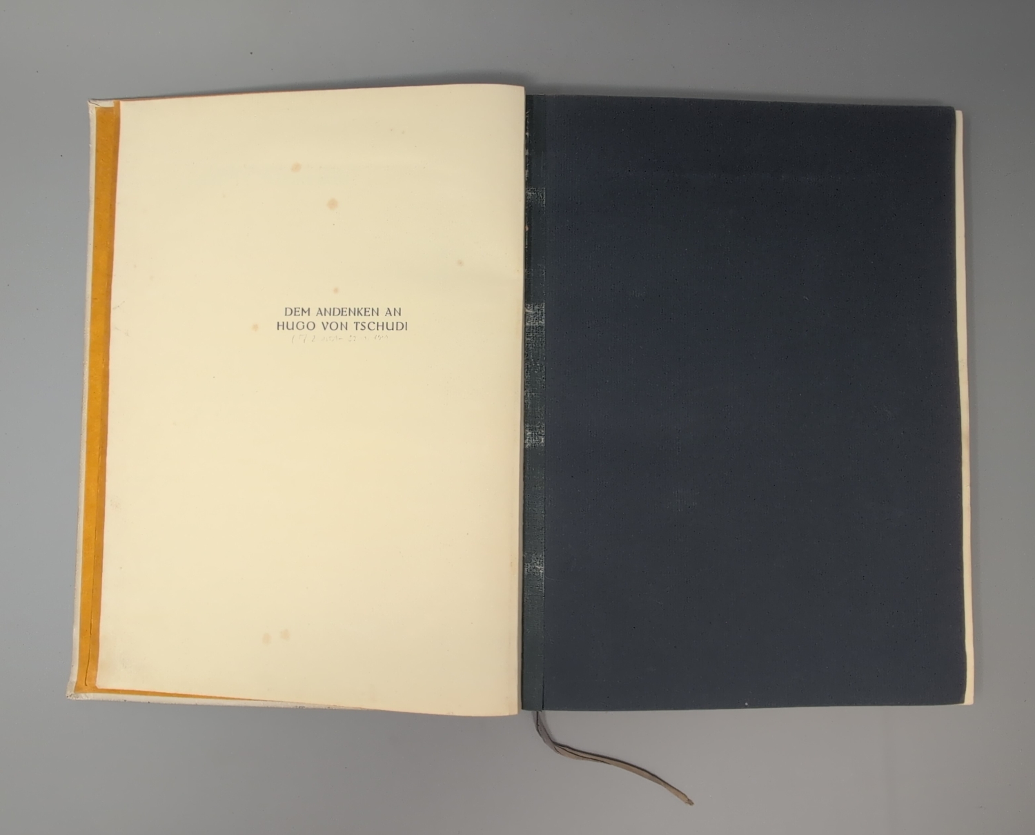 Auf dem Einband der von einem Galvano gedruckte dritte Zustand des Farbholzschnittes von Kandinsky (vgl. Roethel a. a. O.) in Blau, Rot und Schwarz, der nur für die Luxusausgabe und für die erste "Normalausgabe" nachweisbar ist. – Es fehlt der Titel. Vorsätze erneuert, vereinzelt etwas fleckig, Seidenpapierhemdchen der Tafeln teils mit Fehlstellen oder fehlen (bei der Graphik von F. Marc). Mit hs. modernem Besitzeintrag auf dem Vorsatz.