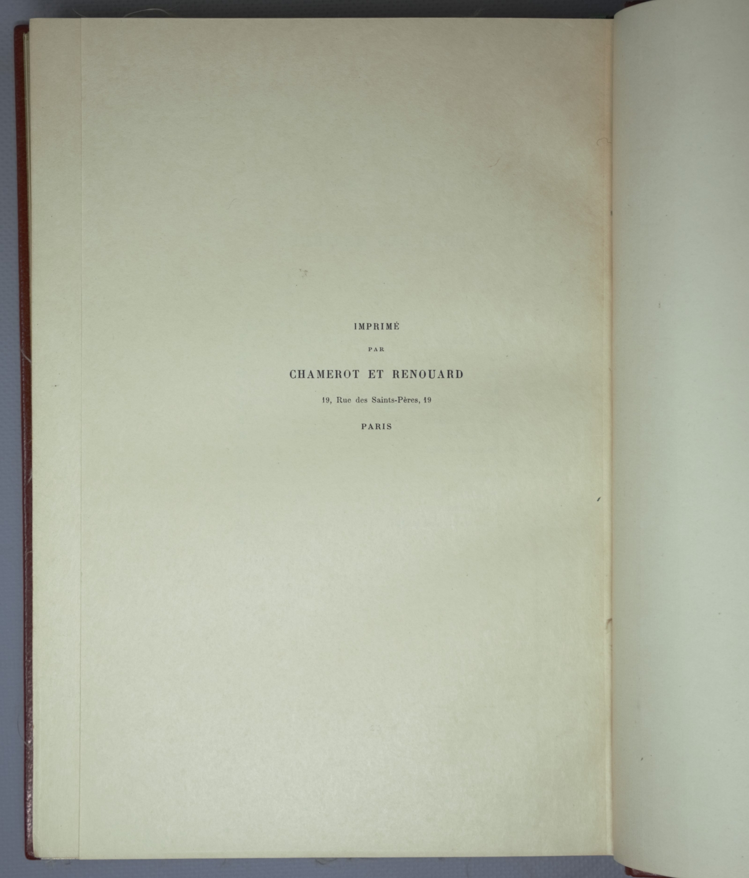 Carteret IV, 331 (unter dem Autor Ramiro). "Belle publication cotée." Monod I, 3216. Vicaire II, 1053. Derra de Moroda 1637 (nur die Normalausgabe, 300 Exemplare auf Vélin). Ray II, Nr. 342. – Nicht nummeriertes, unikales Exemplar auf Japan (die num. Auflage betrug 49 Exemplare), zusätzlich zur doppelten Folge, die die Bibliographen für diese Vorzugsausgabe nennen, mit einer Folge in Rötel und einer Folge auf Samt a la poupée handkoloriert. Zu dem prachtvollen Maroquinband, signiert "Canape R. D." (Relieur-Doreur) vgl. Roger Devauchelle (La reliure : recherches historiques, techniques et biographiques sur la reliure française) III 246f. ausführlich.