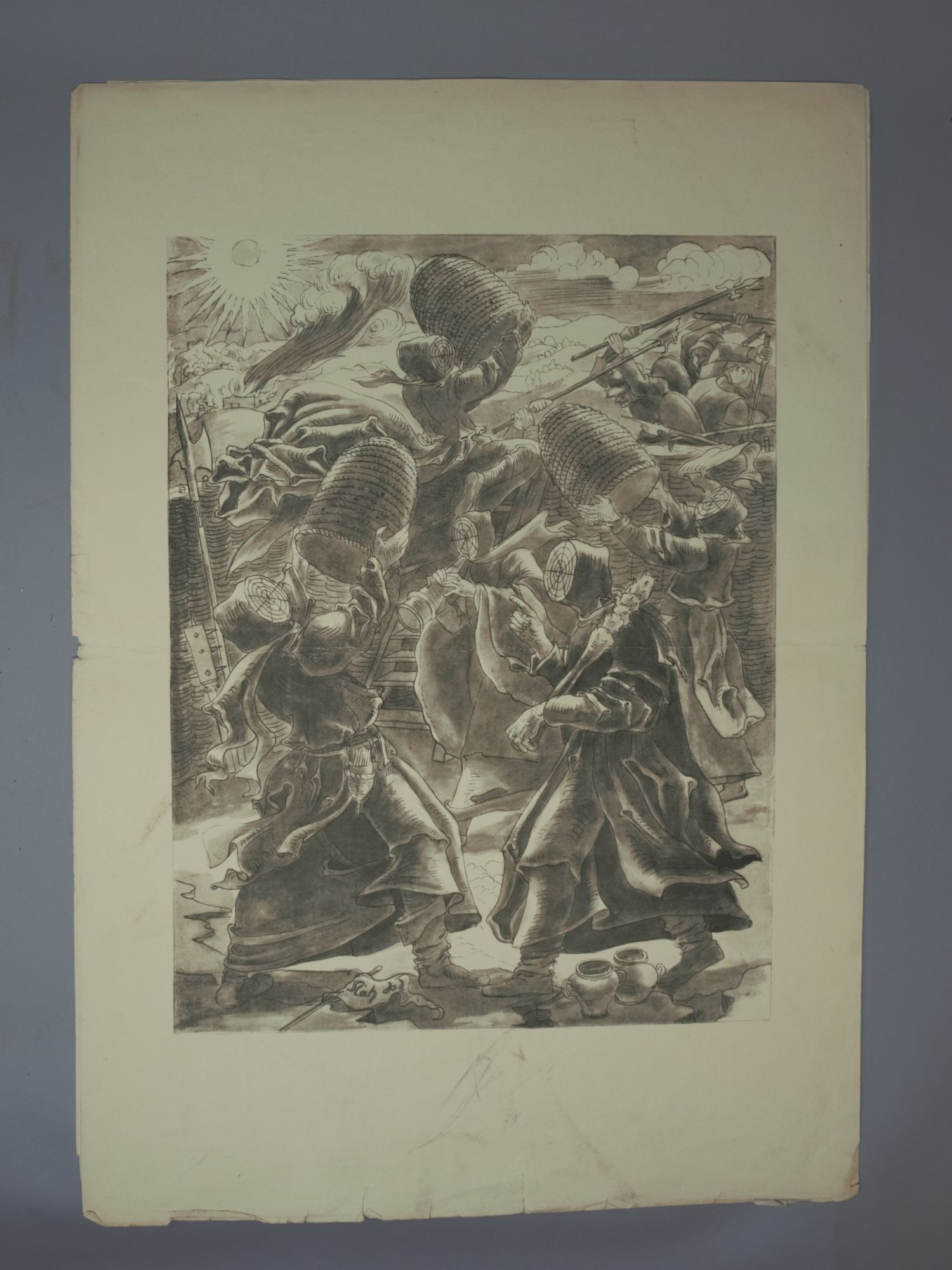 Einzige Ausgabe der seltenenen Illustrationsfolge zu Hermann Löns 1910 erschienenen Roman aus der Zeit des Dreißigjährigen Krieg. Marie Elisabeth Voigt war u. a. von 1928 bis 1933 Meisterschülerin bei Käthe Kollwitz. – Titel fleckig, die Tafeln mit Randläsuren, durchgehend mit Mittelknickfalte.