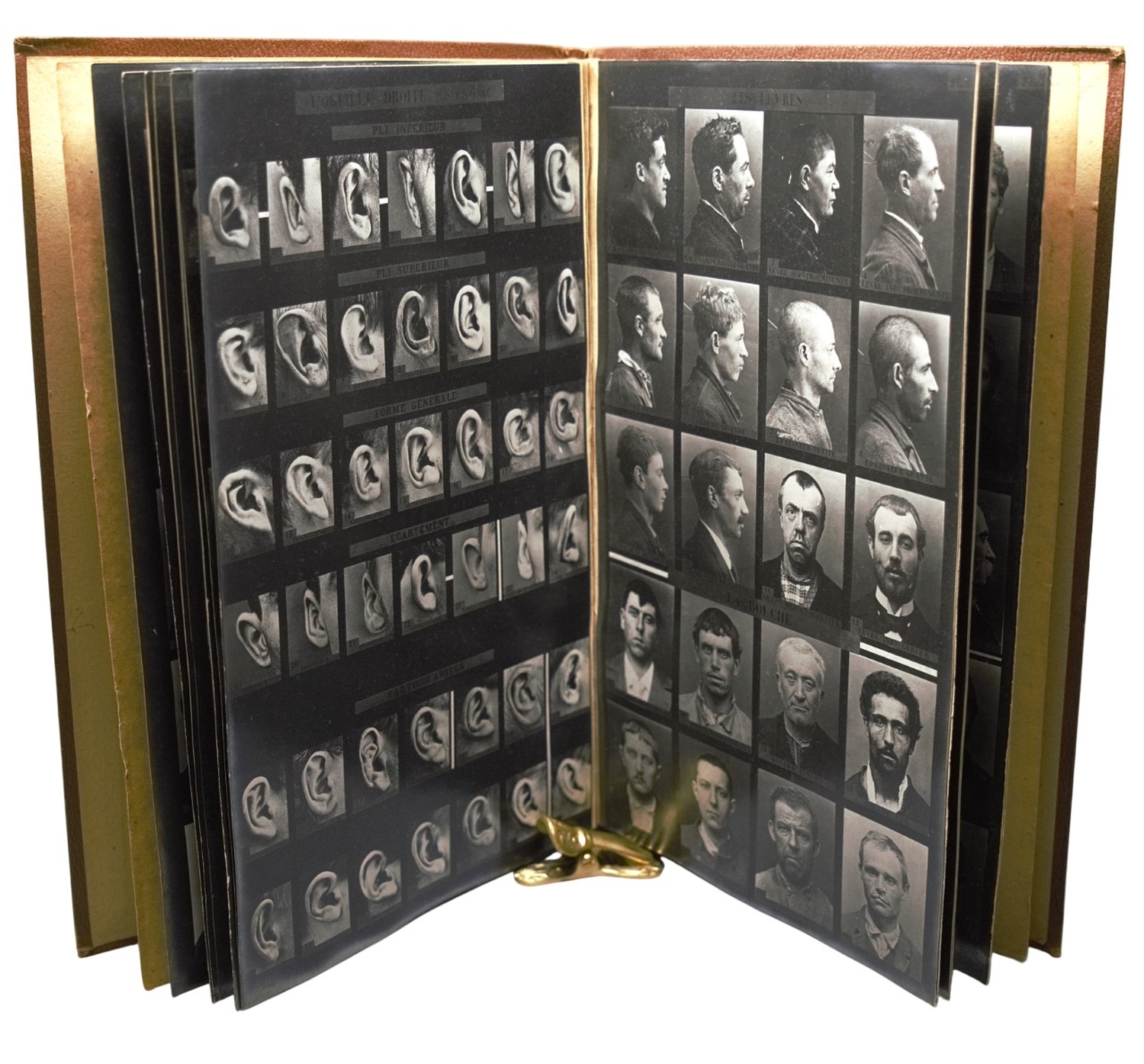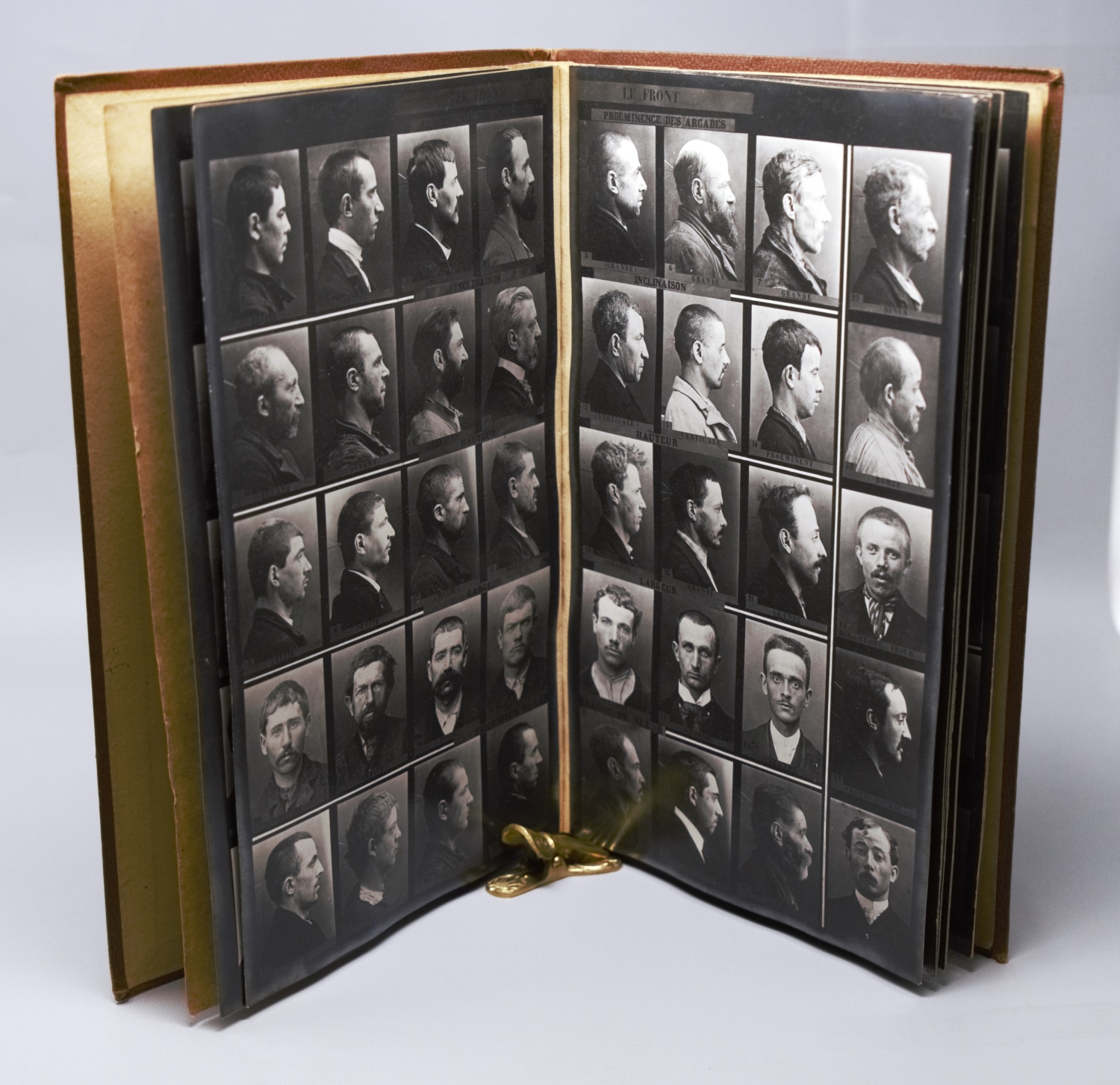 Vgl. Darmstaedter 798: "Alphonse Bertillon veröffentlicht seine anthropometrischen Versuche zur Feststellung der Identität von Personen für die Zwecke der Strafrechtspflege, auf Grund deren zuerst in Paris, dann in den Hauptstaaten Europas ein polizeilicher Erkennungsdienst organisiert wird, wozu er auch die Anlage von Verbrecheralbums anregt". – Das vorliegende Album versammelt exemplarische Bildtafeln zur physiognomischen und morphologischen Erfassung menschlicher Merkmale, wie sie Alphonse Bertillon (1853-1914) im Rahmen seines kriminalanthropometrischen Identifikationssystems - der sogenannten Bertillonage - entwickelte. Das Verfahren basierte auf der Annahme, dass bestimmte Körpermaße individuell und konstant seien, und diente der Wiedererkennung rückfälliger Straftäter. Es gilt als Vorläufer moderner biometrischer Verfahren und beeinflusste die kriminalistische Erkennungsarbeit, zum Beispiel durch die bis heute übliche standardisierte Täterfotografie.