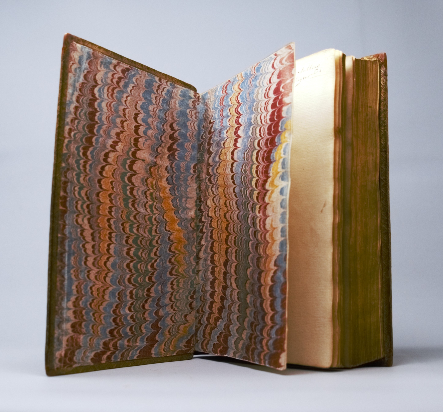 Bei dem Portrait und dem Titelkupfer im vorliegenden Exemplar handelt es sich um Umdrucke. Sie weisen die bei E. Rücker (M. S. Merian, 1967) hierfür genannten Merkmale auf (S. 15): sie haben zarte Linien, keinen Plattenrand und sind seitenverkehrt, da bei dem Umdruckverfahren ein Druck vom druckfrischen Papier als Abklatsch abgenommen wird. Diese Form des Umdrucks war ein von M. S. Merian geschätztes Verfahren, welches sie nur bei den wenigen Exemplaren benutzte, die sie selbst kolorierte. "Begreiflicherweise ist die Anzahl der Umdruckexemplare gering. Beim Raupenbuch sind sie eine solche Ausnahme, daß die gesamte Merian-Literatur davon gar nicht Kenntnis nimmt" (Rücker S. 15). Es handelt sich hier also um eines jener wenigen Vorzugsexemplare, das von Maria Sibylla Merian oder ihren Töchtern - da sie schon 1717, also ein Jahr vor Drucklegung - koloriert wurde. E. Rücker beschreibt nur ein vollständiges Exemplar des Raupenbuches mit Umdrucken; nämlich das der Stadtbibliothek Frankfurt, in dem wohl alle 150 Kupferstiche im Umdruckverfahren hergestellt sind (Rücker S. 15). – Auf dem weißen Vorsatzblatt ist folgende Eintragung aus dem 18. Jahrhundert zu finden: "Det is een origineel Exemplaer van de Authuer. Self afgeset, extra Raar en Seer Suijver". - Wir wollen diesem Kommentar des möglichen Erstbesitzers nichts hinzufügen.