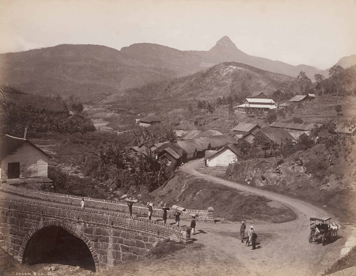 Photographer: Skeen & Co. (active ca. 1860-1890), Scowen & Co. (active ca. 1870-1890). Views of Ceylon. 1880s. 12 albumen prints, mounted to boards. Each between 21 x 27,5 cm (22,5 x 29,5 cm) and 21,5 x 28 cm (25 x 31,5 cm). Some with the photographer's studio information in negative in lower margin.