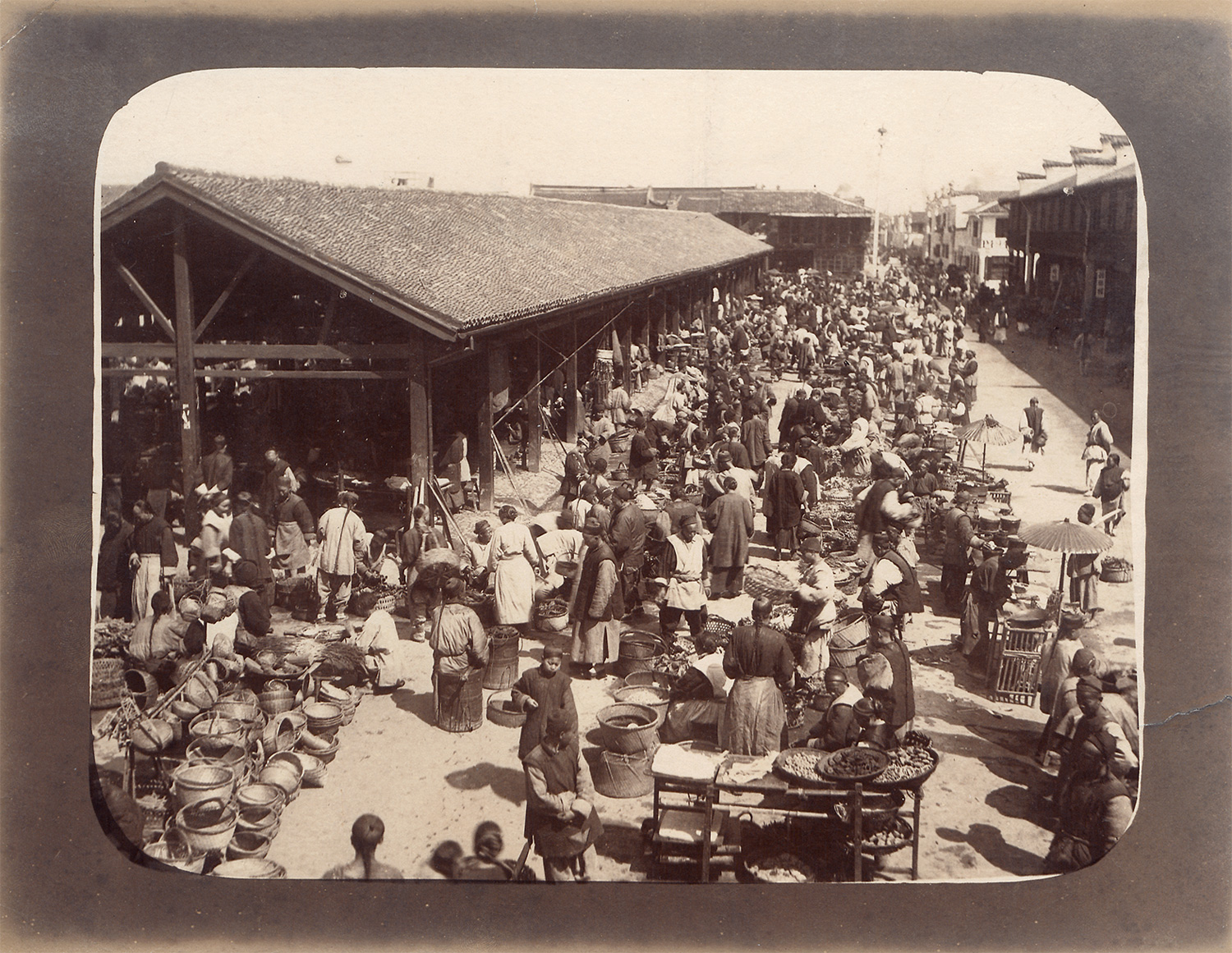 Photographers: William Saunders (1832-1892), Henry Cammidge (active ca. 1880-1910), and unknown. Views of Shanghai. 1870s-1900s. 9 albumen prints. Each between 19,5 x 25,5 cm and 22 x 28 cm. Some annotated in the negative or in pencil on the verso.