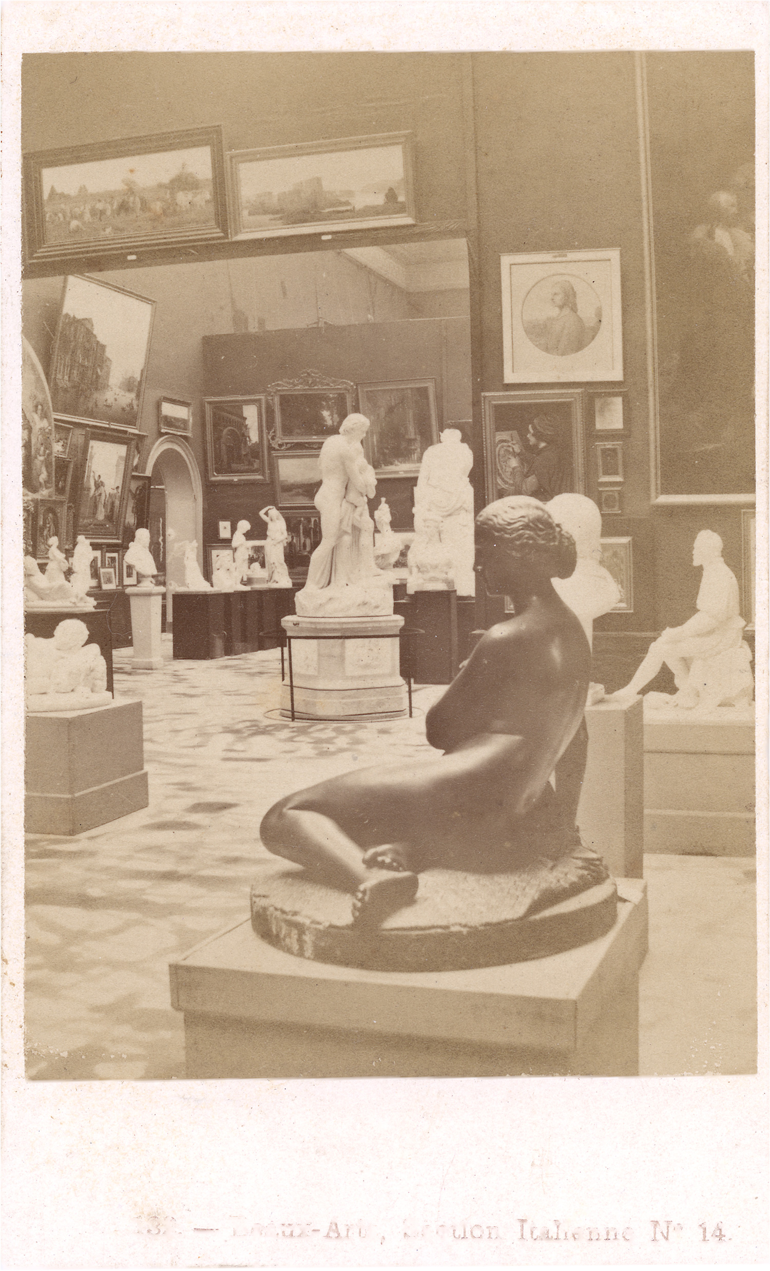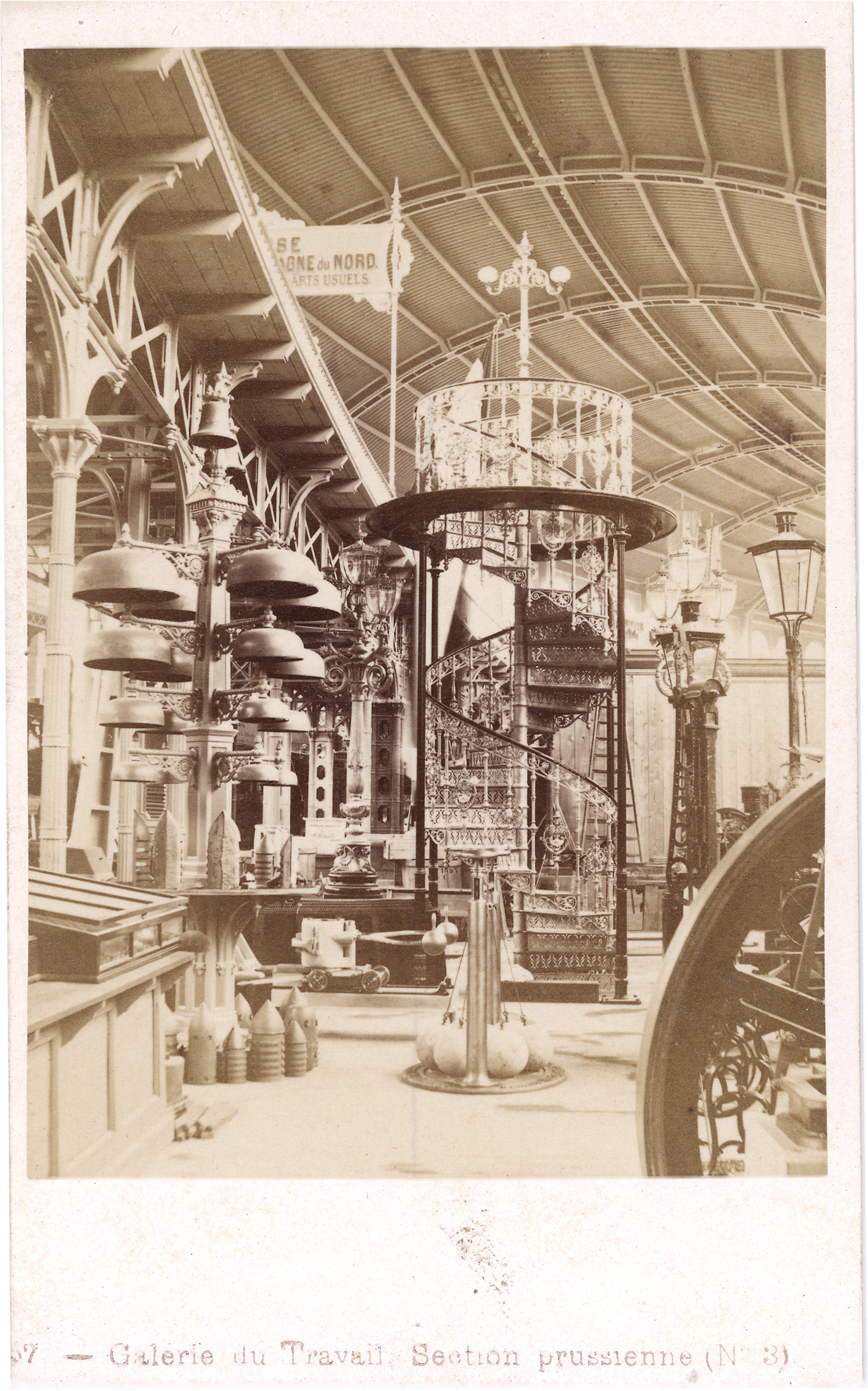 This group of cartes-de-visite offers a richly detailed visual record of the Exposition Universelle of 1867, the second world’s fair held in Paris under Napoleon III. Organized on the Champ de Mars, the exhibition brought together over 50,000 exhibitors from across the globe, showcasing cutting-edge achievements in industry, agriculture, and the arts. The photographs document a wide array of national and thematic sections - including the Galerie du Travail, Beaux-Arts pavilions, and colonial displays such as the Galeries Algériennes - as well as highly detailed interior views of individual booths featuring machine tools, fine ceramics, taxidermied ostriches, ornamental zincwork, and more. Captured and distributed by the Parisian firm Léon & Lévy, these images were originally taken as glass stereoscopic negatives and later adapted to the popular carte-de-visite format for wide dissemination. – Some fading, scuff marks, and traces of silver mirroring in the shadow areas; otherwise all in good to very good condition.