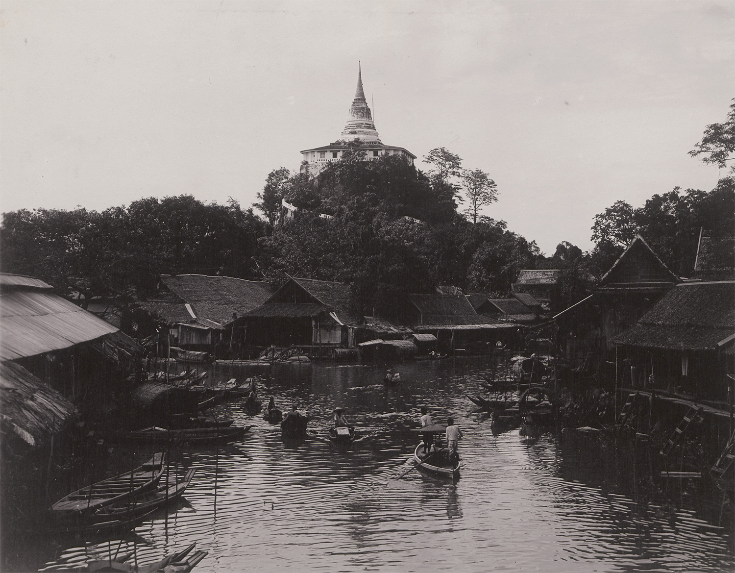 Photographer: Philip Klier (active ca. 1880-1911). Views of Bangkok, Paknam, Rangoon, and Mandalay. 1906. 22 gelatin silver and collodion prints, mounted to boards. Each ca. 22,5 x 28,5 cm (28,5 x 40 cm). Most with handwritten caption in black ink below the image on the mount, some with the photographer’s studio information in the negative.