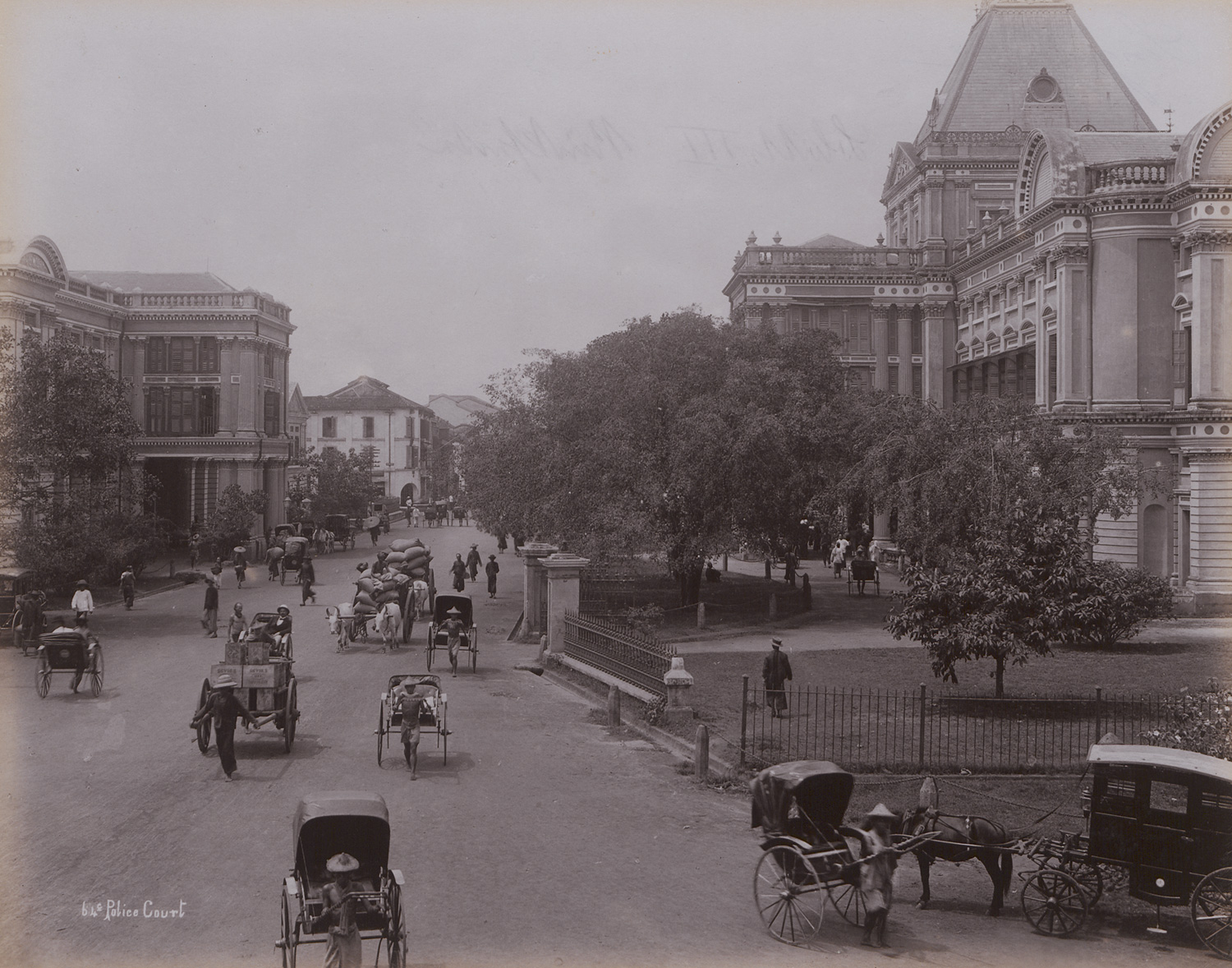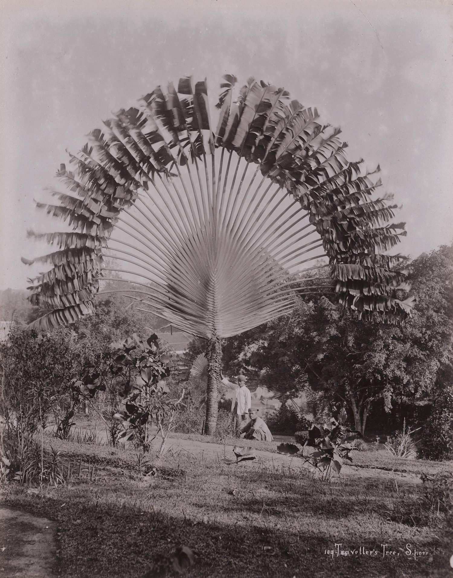 This extensive group of photographs offers a richly detailed visual record of Singapore at the height of the colonial period. Produced primarily by G. R. Lambert & Co. - the leading commercial photography studio in British Malaya - the images document both iconic landmarks and everyday street scenes. Highlights include the bustling activity of Boat Quay and Keppel Harbor, lively street views with rickshaws and pedestrians in tropical attire, as well as notable colonial-era buildings such as the Police Court and Medical Hall. Also featured is the Hindu temple at South Bridge Road, along with verdant botanical studies, including the striking symmetry of a traveller’s tree (Ravenala madagascariensis) and a distant view of Tyersall Palace nestled within the Singapore Botanic Gardens. One photograph, likely by another photographer, presents a scenic view across the straits toward a Malay village, possibly Kampong Telok Saga on Pulau Brani. – Some light fading, occasional surface spotting and scuff marks, some with light creases and small edge tears, otherwise in good to very good condition.