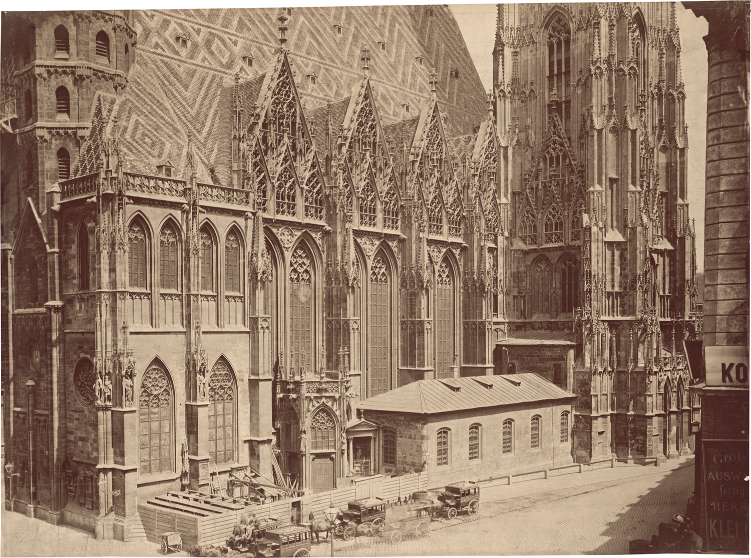 Photographer unknown. Stephansdom, Vienna seen from the West. Mid-1870s. Mammoth albumen print. 56 x 77 cm (mount 68 x 88 cm). Mounted to board (soiled, some traces of use).