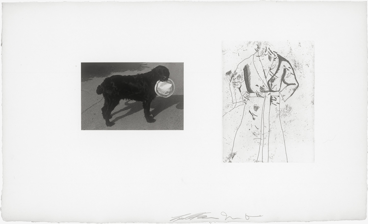 Photographs and Etchings. 1969. 17 gelatin silver prints by Lee Friedlander and 16 etchings by Jim Dine. Each between 12 x 18 and 18 x 26 cm or reverse (46 x 76 cm). Housed in original black faux-leather clamshell box with embossed title (entire size 49 x 80 x 3 cm). Published by Petersburg Press, London, in an edition of 75 plus 15 artist’s proofs.