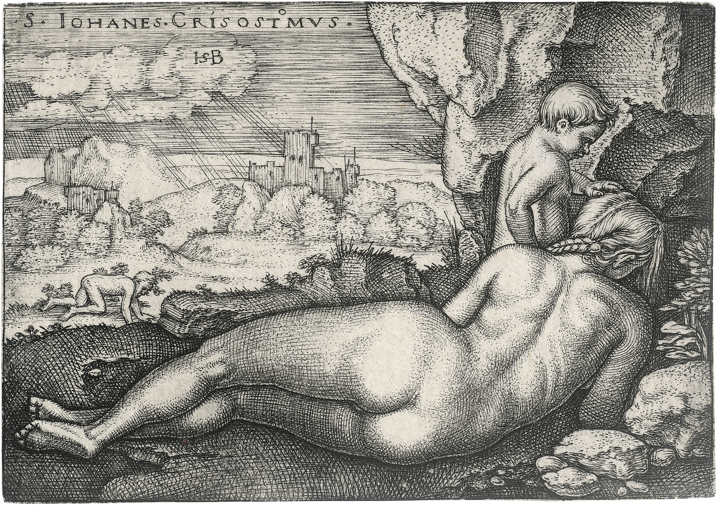 Die Buße des hl. Johannes Chrysostomus. Kupferstich. 5,4 x 7,7 cm. B. 215, Pauli 70, Hollstein 70 VIII, Röver-Kann (New Hollstein) 71 VIII.