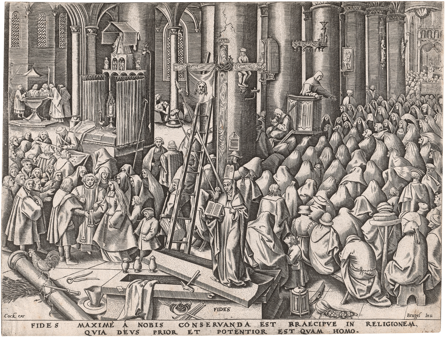 nach. Fides. Kupferstich von Philips Galle, aus der Folge der Sieben Tugenden, wie auch die folgenden beiden Losnummern. 22,2 x 29 cm. (1559). Hollstein (Bruegel) 132, Bastelaer 132, Riggs 32, Orenstein (New Hollstein, Bruegel) 13 I (von II), Sellink/Leesberg (New Hollstein, Galle) 309, Bassens/Grieken 13 a I (von II).