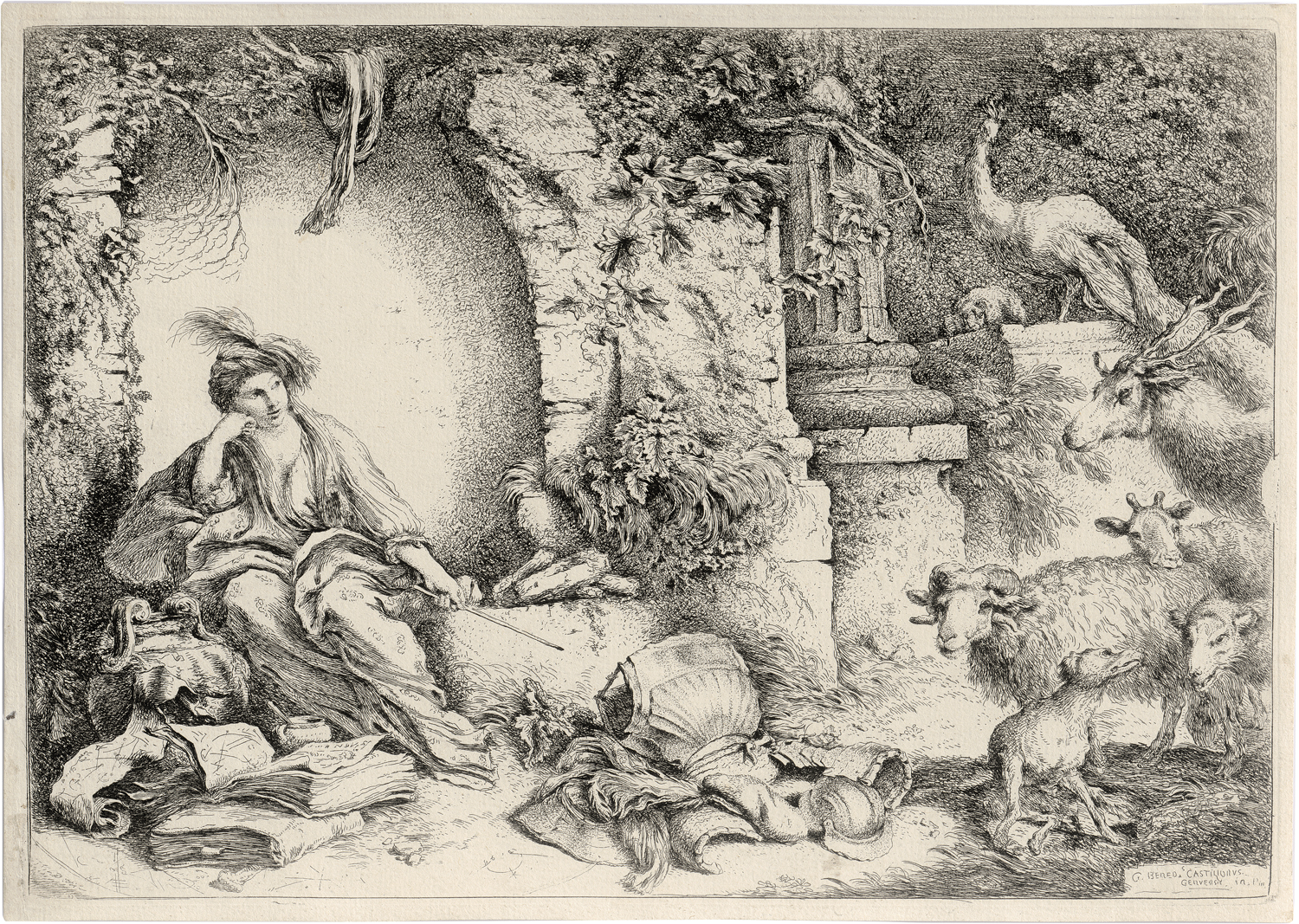 Circe verwandelt die Gefährten des Odysseus in Tiere, oder: Die Melancholie. Radierung. 21,7 x 30,8 cm. Um 1650. B. 22, TIB (Commentary) .022 S2.