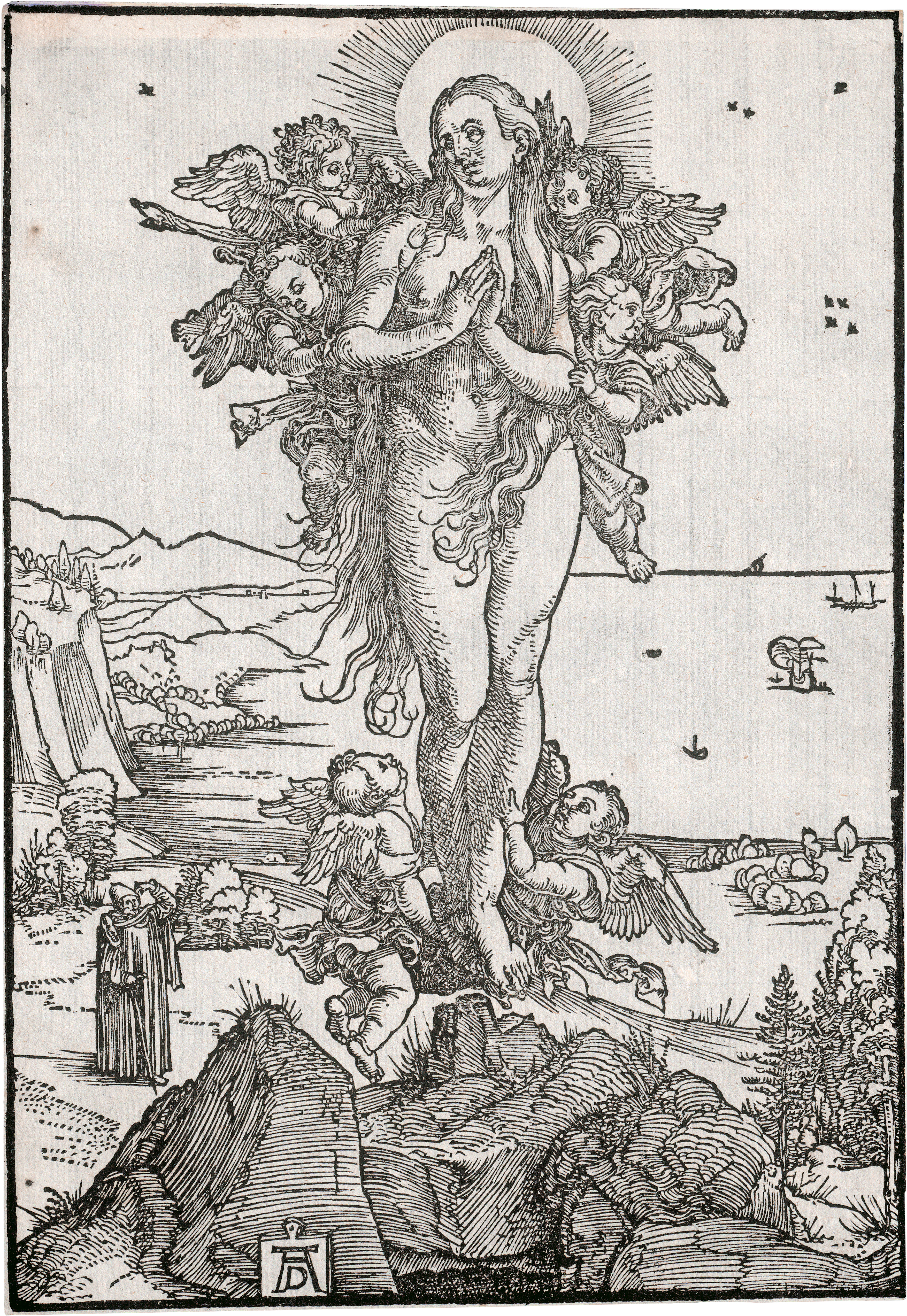 Die Verzückung der hl. Maria Magdalena. Holzschnitt. 21,4 x 14,7 cm. Um 1501-04. B. 121, Meder 237 e (von f).