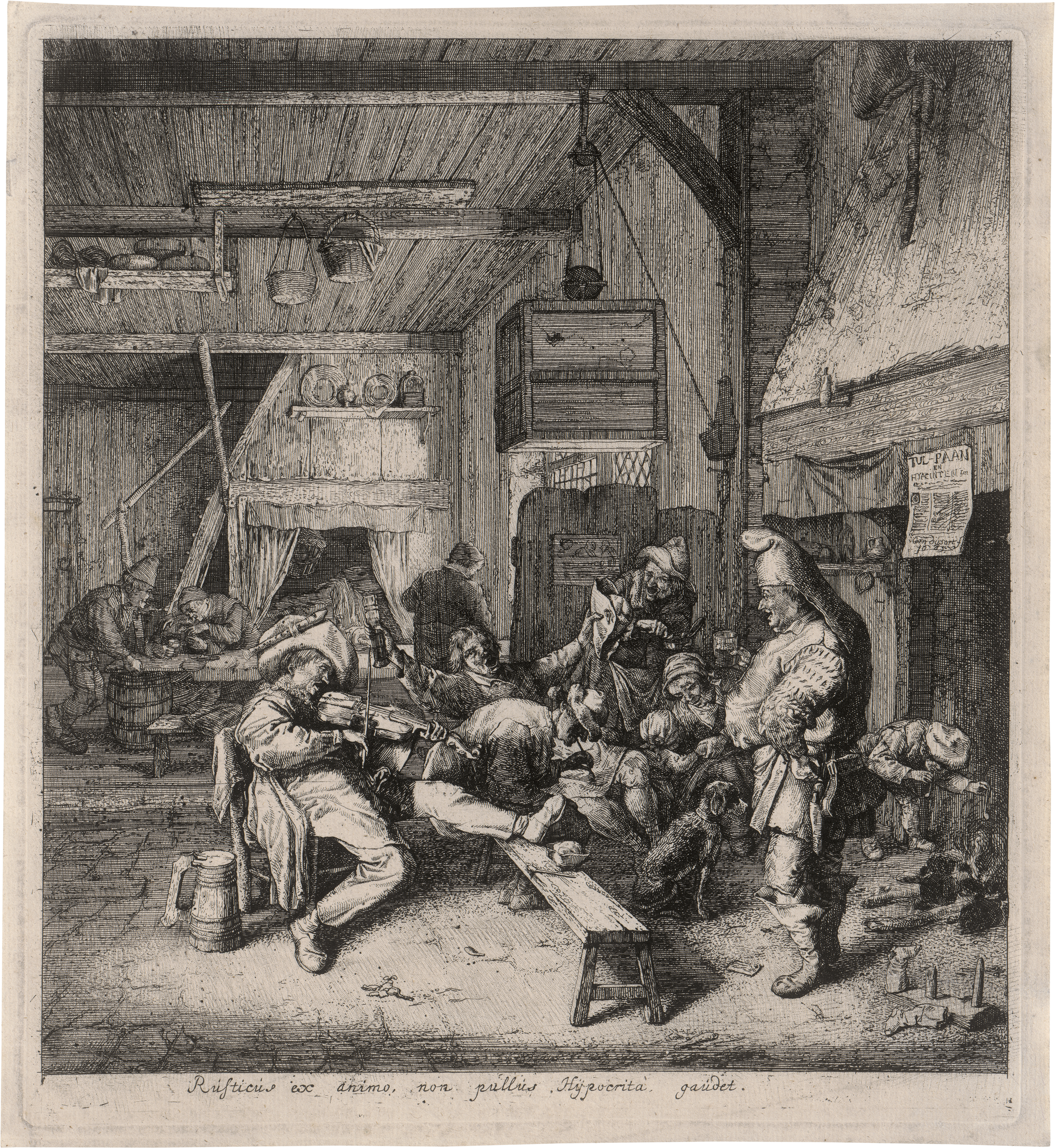 Der Geigenspieler in der Dorfschenke. Radierung. 27,9 x 25 cm. 1685. B. 15, Dutuit 15, Hollstein 15 III. Wz. Wappen von Amsterdam.