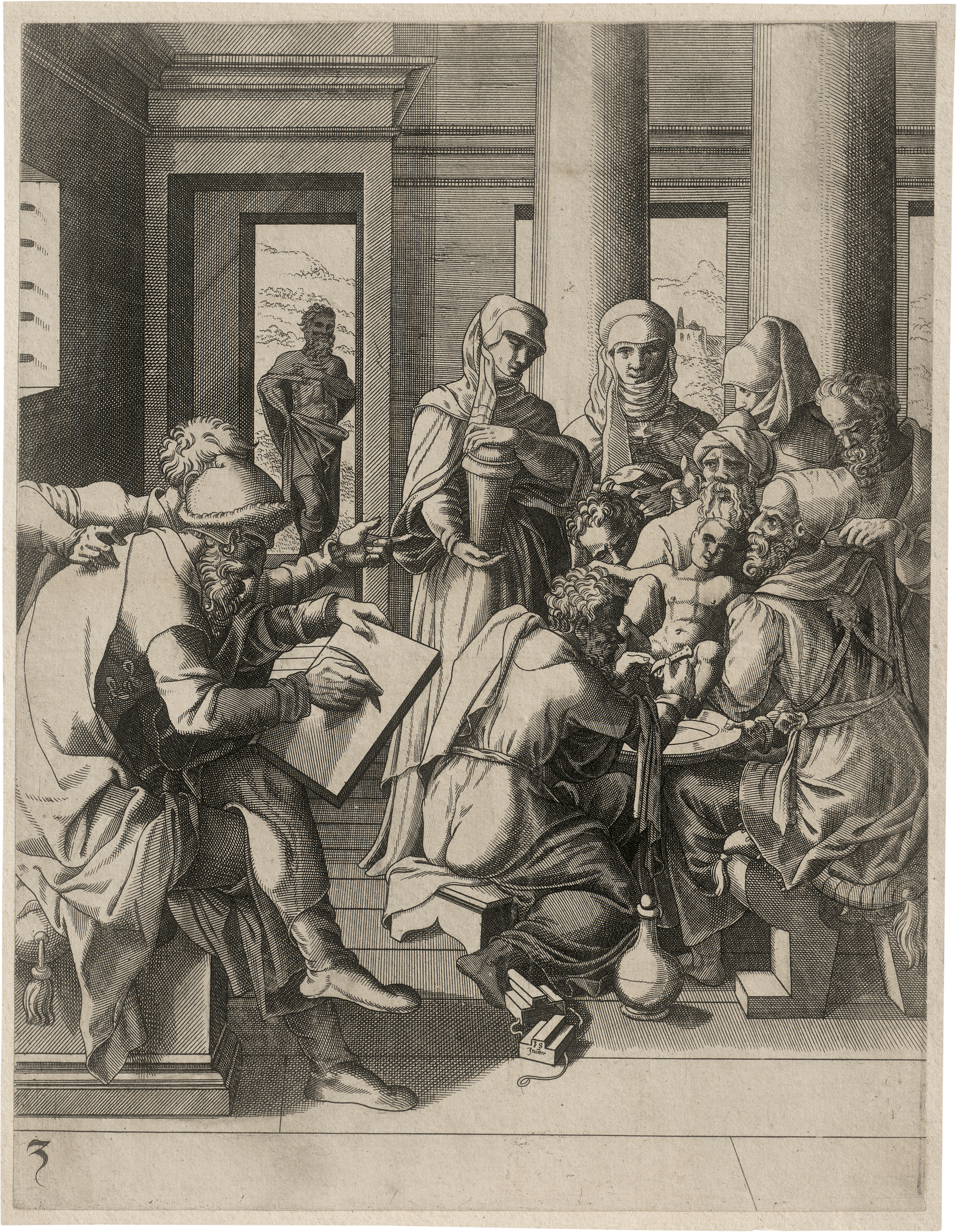 Die Beschneidung Johannes des Täufers. Radierung nach Jan Swart van Groningen. 23,9 x 18,4 cm. (1558). Hollstein (Liefrinck) 4, Hollstein (after Swart) 5.