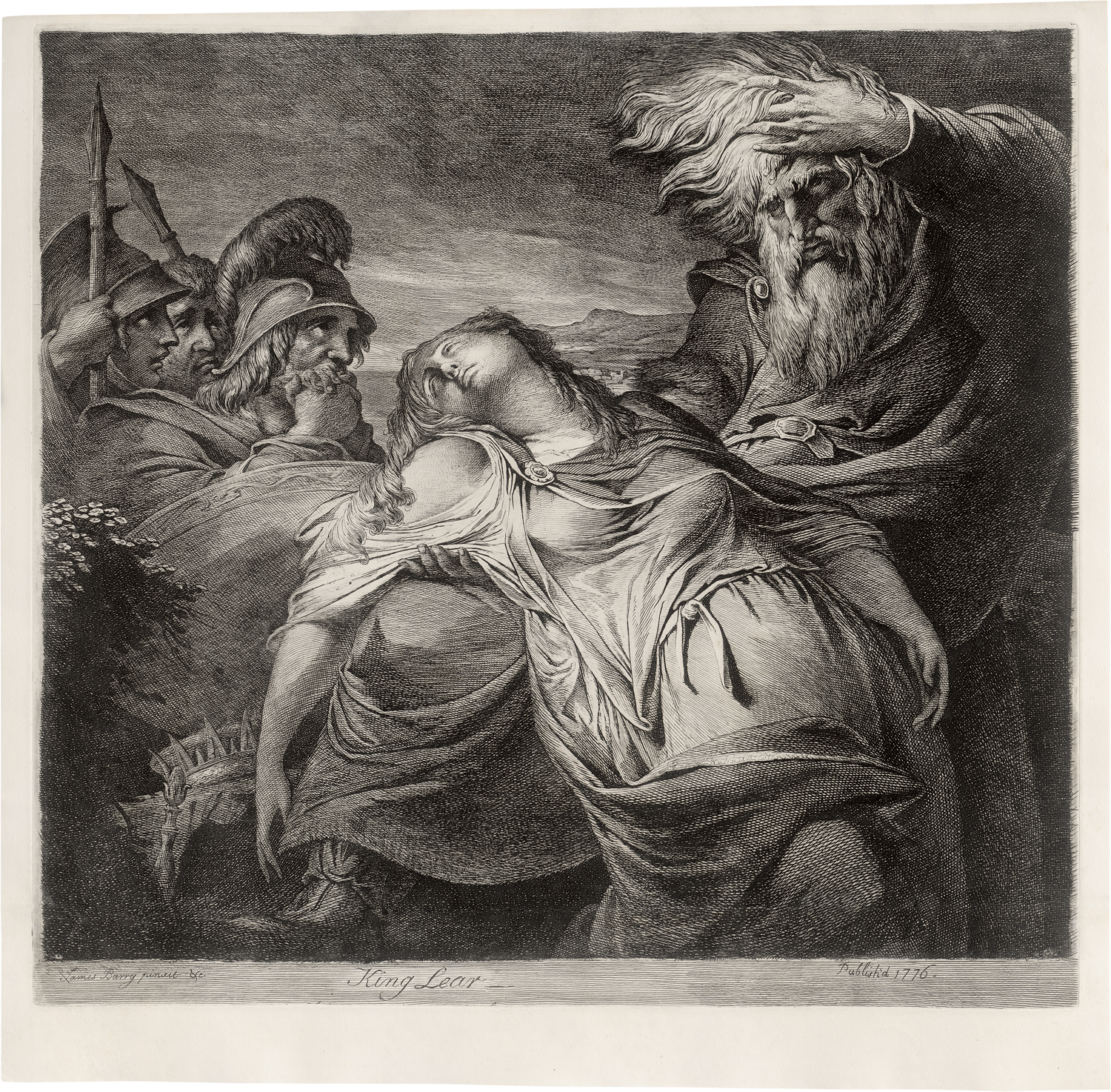 König Lear und Cordelia. Radierung und Grabstichel auf einem festen Kupferdruckpapier. 54,5 x 55,6 cm. Um 1790. Pressly 5 VII.
