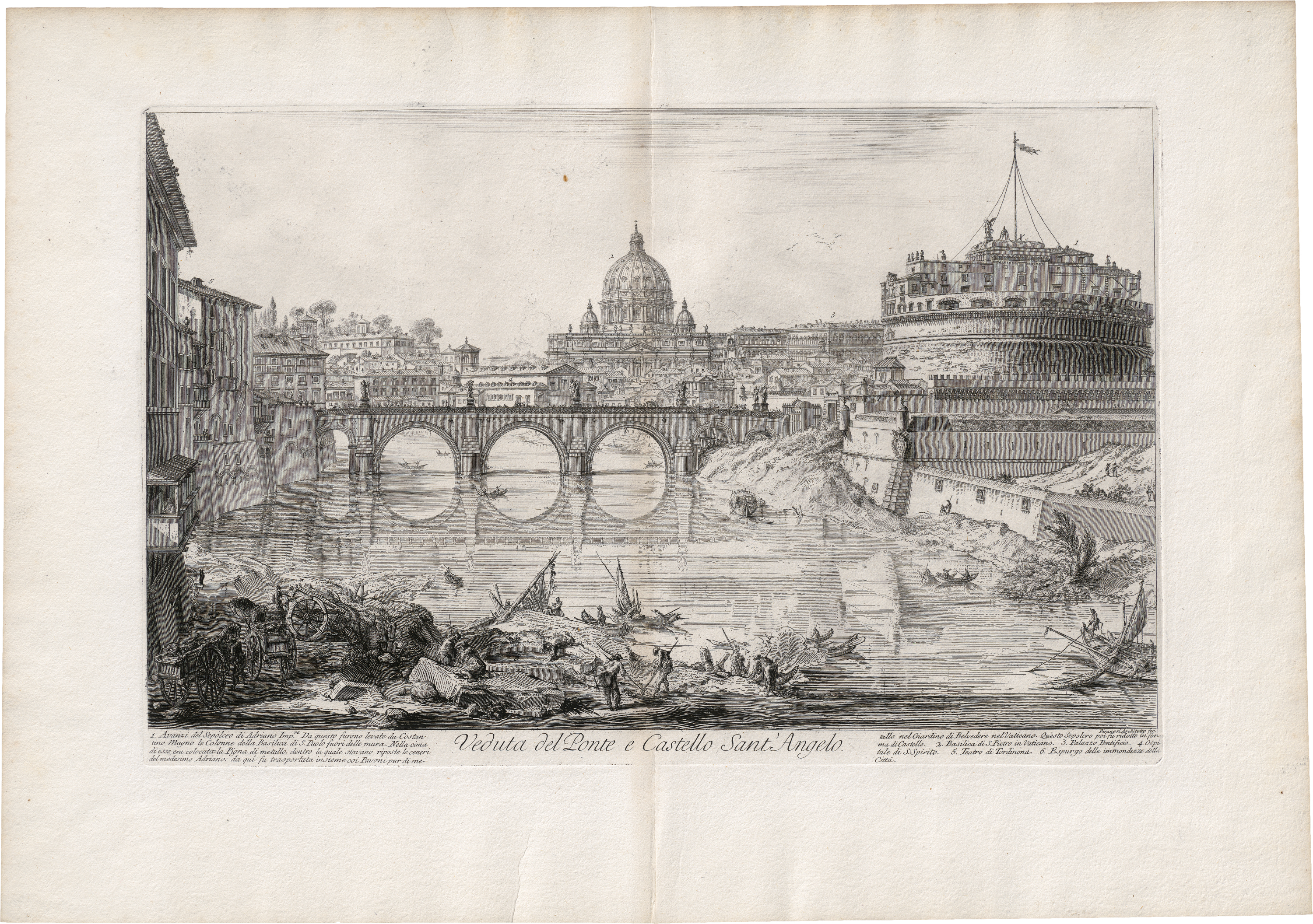 Veduta del Ponte e Castello Sant'Angelo. Radierung. 37,6 x 58,3 cm. (1754). Hind 29 I (von VI). Wz. Undeutlich.