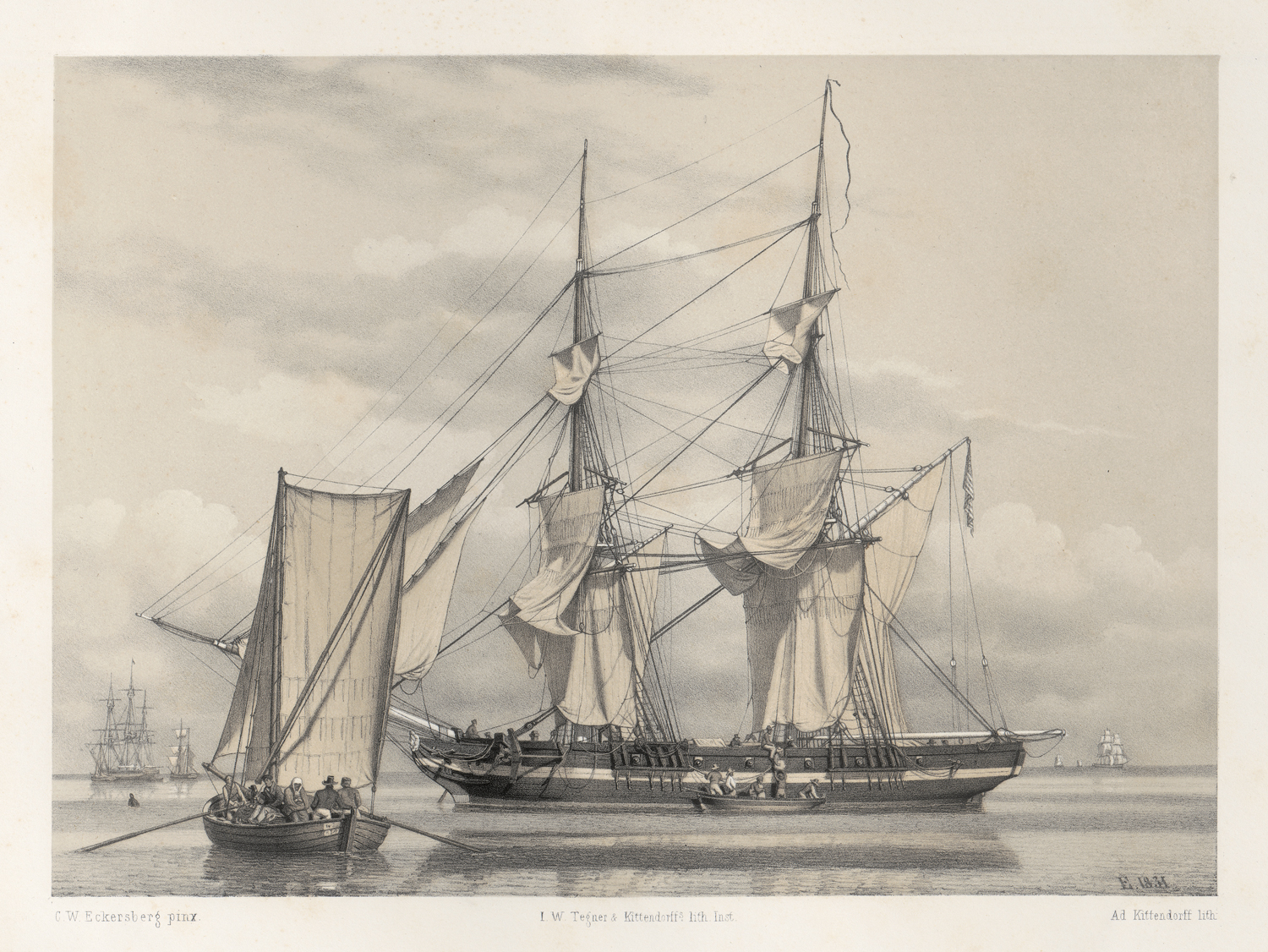 Johan Adolph Kittendorfs beeindruckende Bildersammlung reproduziert Werke aller Genres von rund 135 dänischen Künstlern und gewährt somit einen einzigartigen Überblick über die dänische Malerei des 19. Jahrhunderts. Vertreten sind einzelne Vorläufer wie N. Abildgaard und J. Juel sowie viele Namen des sogenannten Goldenen Zeitalters wie D. C. Blunck, J. C Dahl, C. Hansen, A. Melbye und natürlich C. W. Eckersberg. Zahlreich sind aber auch die Werke späterer Generationen, etwa von J. la Cour, V. Khyn und C. Locher. Das Projekt beschäftigte Kittendorf über drei Jahrzehnte: Erste Blätter wurden wohl schon 1855 veröffentlicht, der späteste datierbare Druck stammt aus dem Jahr 1887. - Sämtlich ganz ausgezeichnete, differenzierte Drucke mit beiten Rändern. Leicht stockfleckig, die ersten Blätter etwas stärker, sonst in schöner und unberührt originaler Erhaltung. Jeweils mit dem Trockenstempel der Verleger. In dieser Vollständigkeit selten.