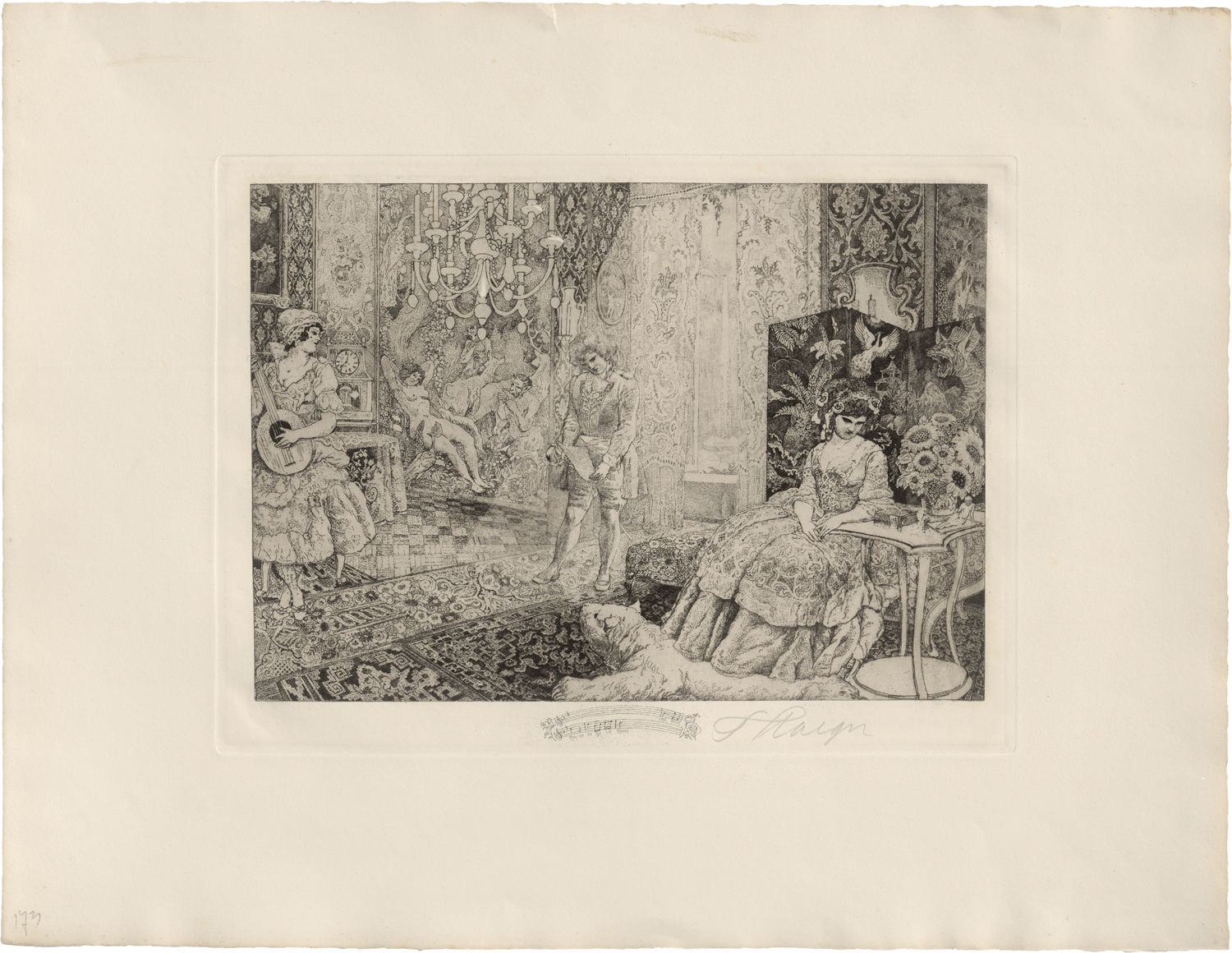 "... sagt, holde Frauen die ihr sie kennt" (Illustration zu Don Juan). Radierung mit Aquatinta. 25,6 x 34,2 cm. Signiert. Vgl. Muschler 173. Wz. Augsburger Wappen.