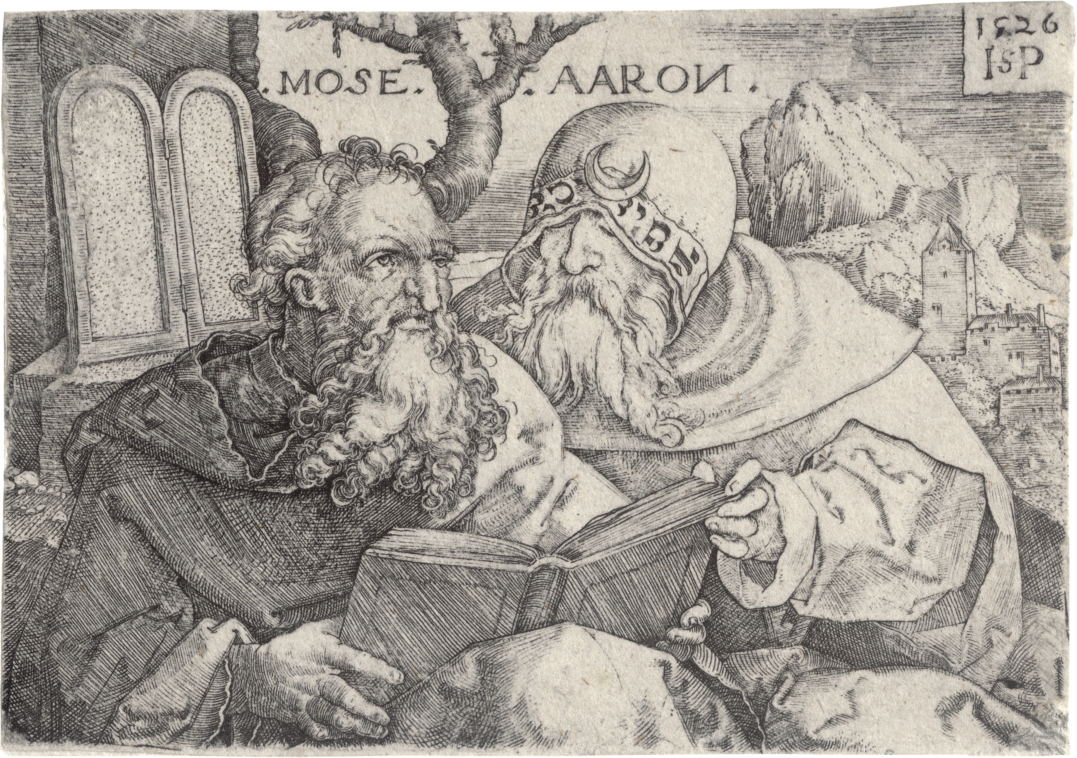 Moses und Aaron. Kupferstich. 7,7 x 11,2 cm. 1526. B. 8, Hollstein 9, Röver-Kann (New Hollstein) 12.