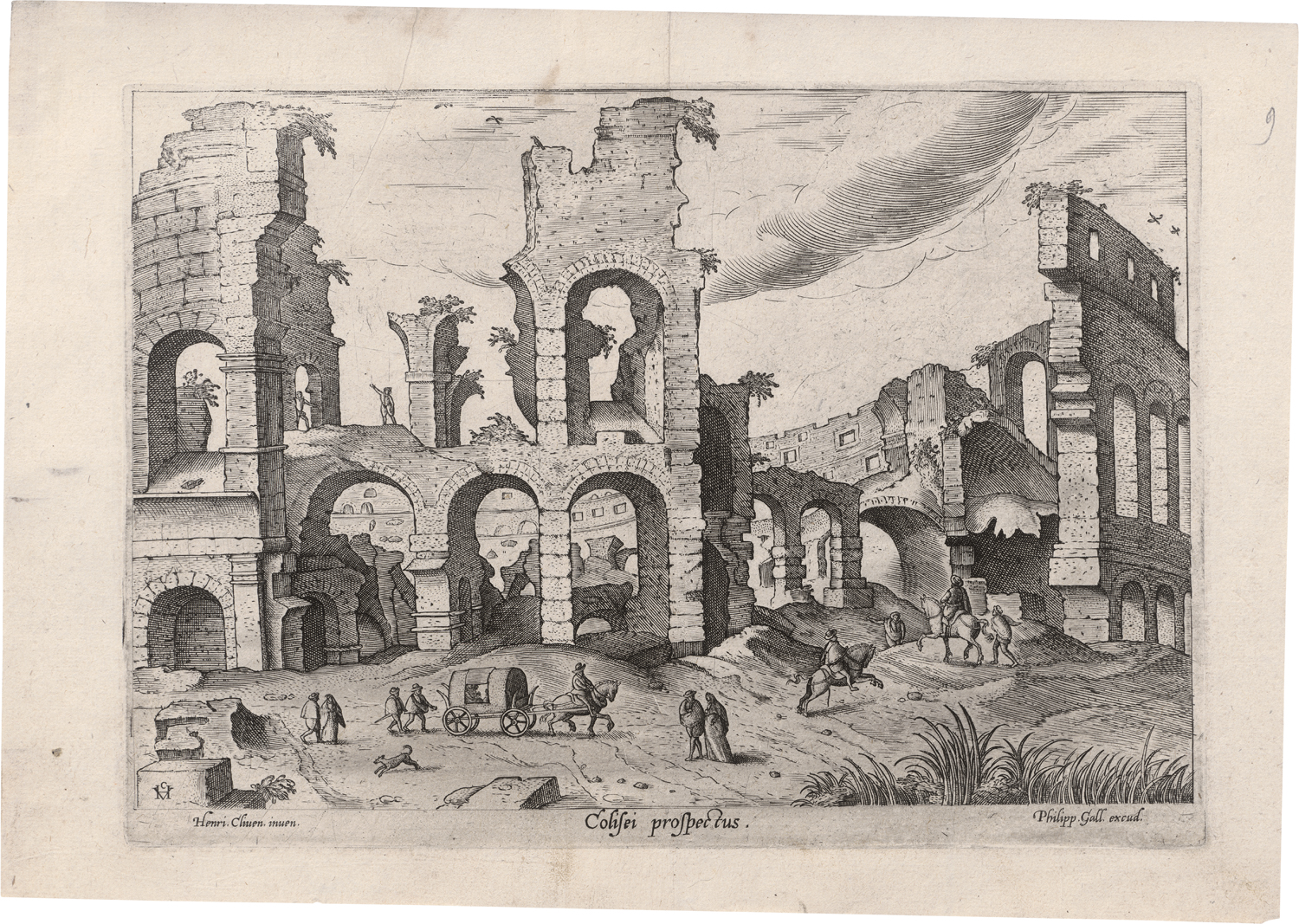 nach. Zehn Ansichten von römischen Ruinen. 10 Kupferstiche. Je ca. 17,3 x 24,4 cm. Hollstein 2, 3, 7, 12, 14-16, 20, 53, 24, je I (von II), Seelink/Leesberg (New Hollstein), aus R18 ("Workshop Philips Galle"). Wz. Handschuh.