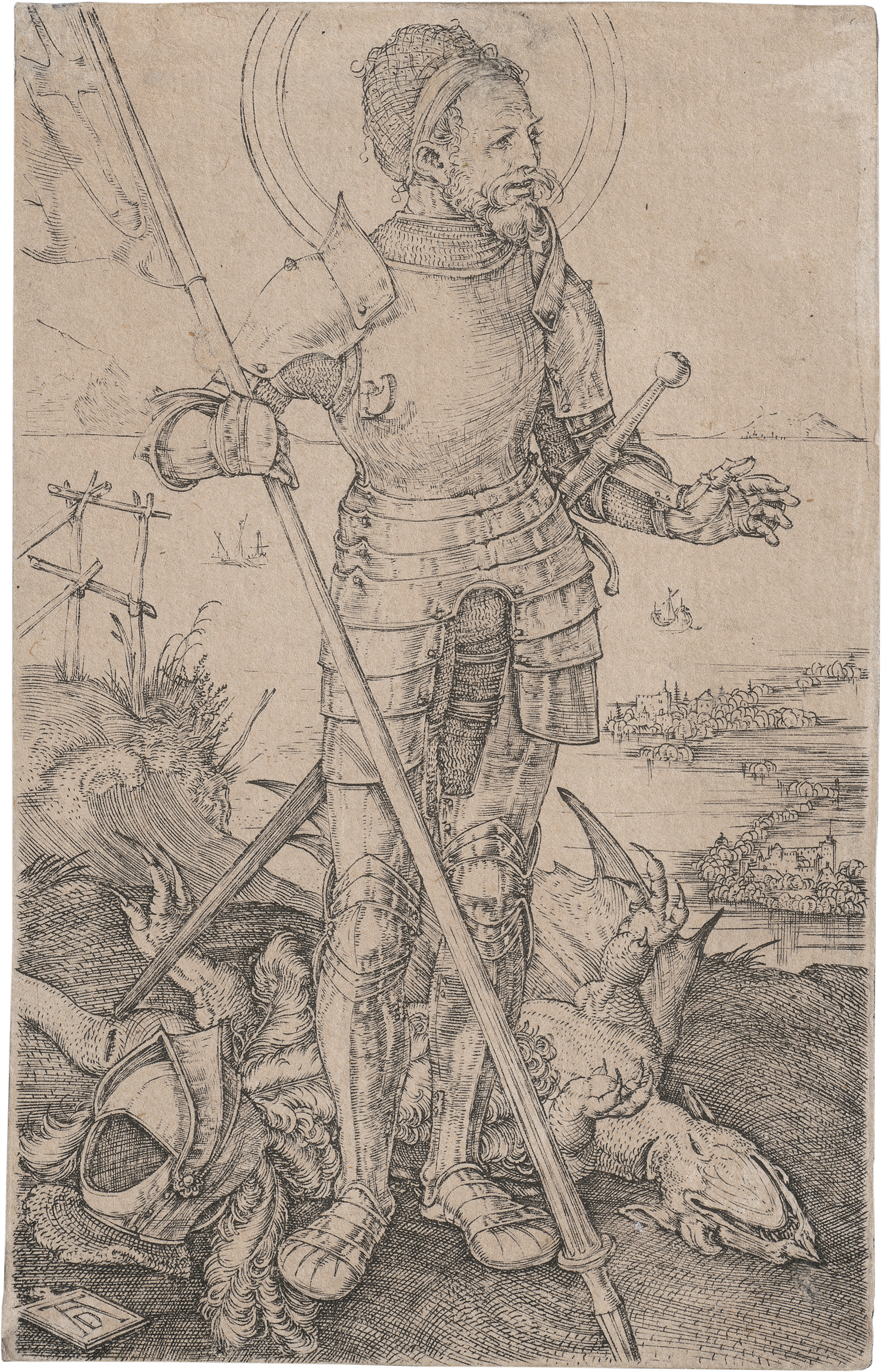St. Georg zu Fuß. Kupferstich. 11,2 x 7,1 cm. Um 1507/08. B. 53, Meder 55 f.