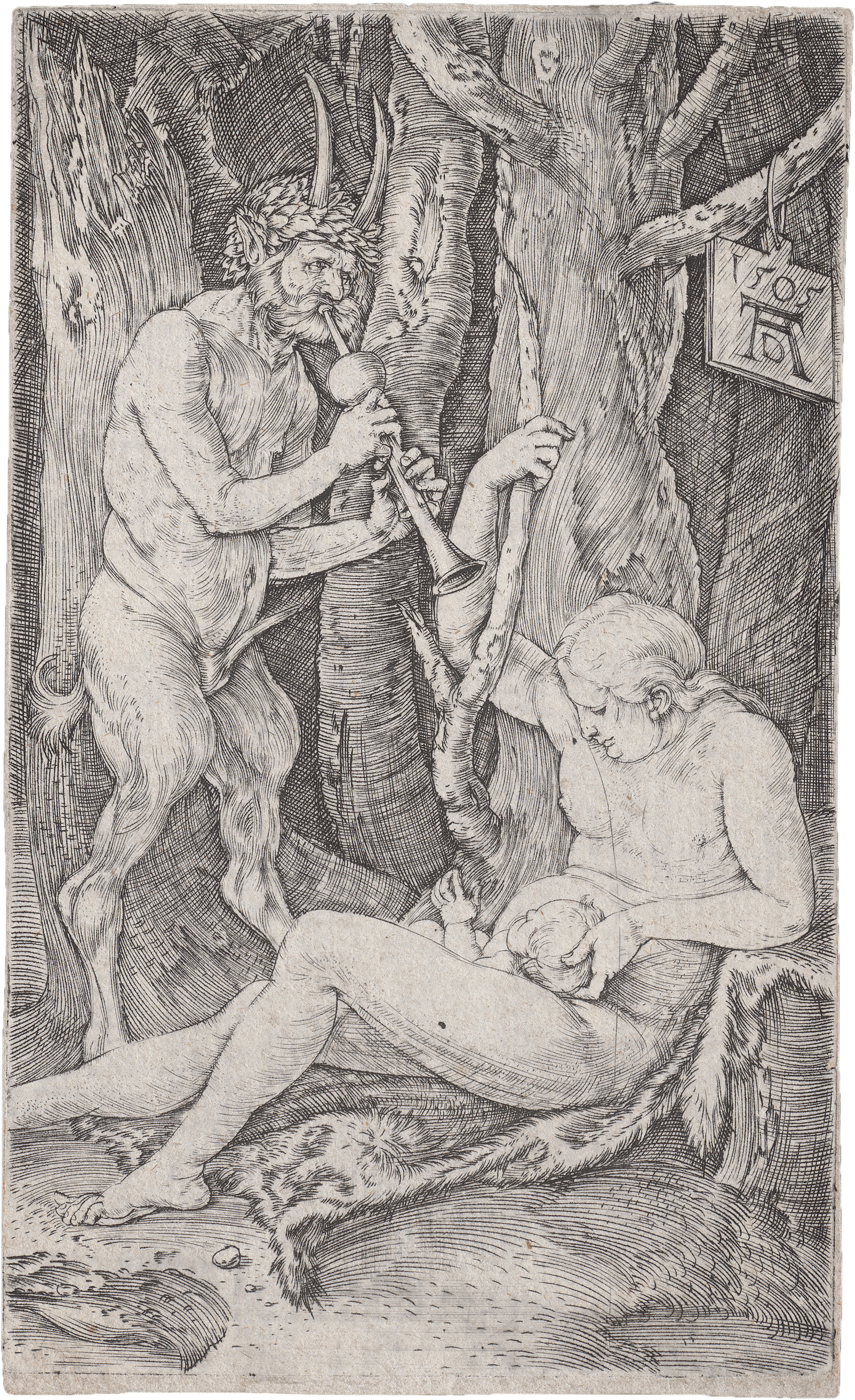 Die Satyrfamilie. Kupferstich. 11,6 x 7,1 cm. 1505. B. 69, Meder 65 wohl c-d (von d).