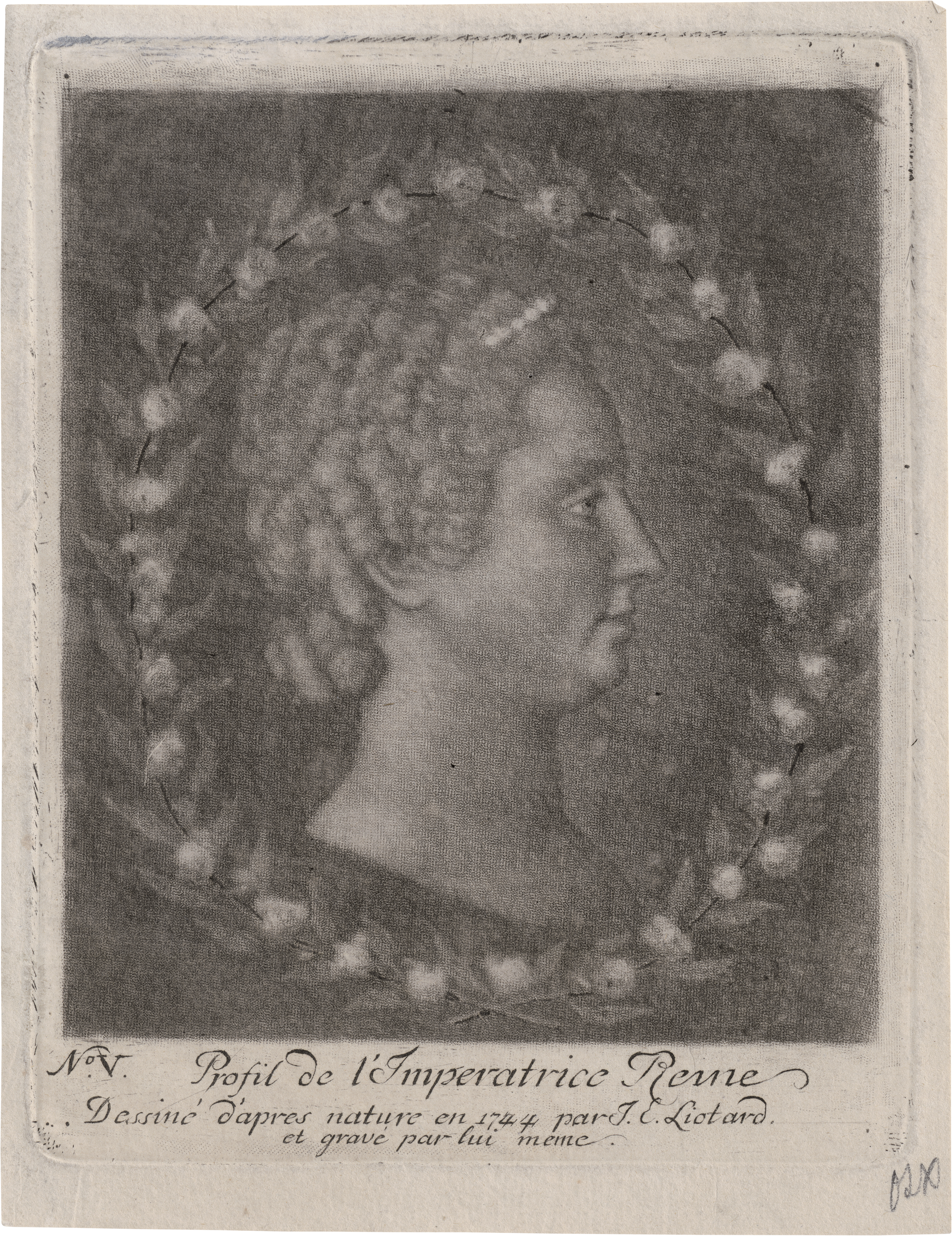 Profil de l'Impératrice Reine: Bildnis Maria Theresias im Profil, Kaiserin von Österreich. Schabkunstblatt. 16,5 x 13 cm. Um 1780. Nicht in Heller-Andresen, Tilanus 13, Roethlisberger/Loche 527 II.