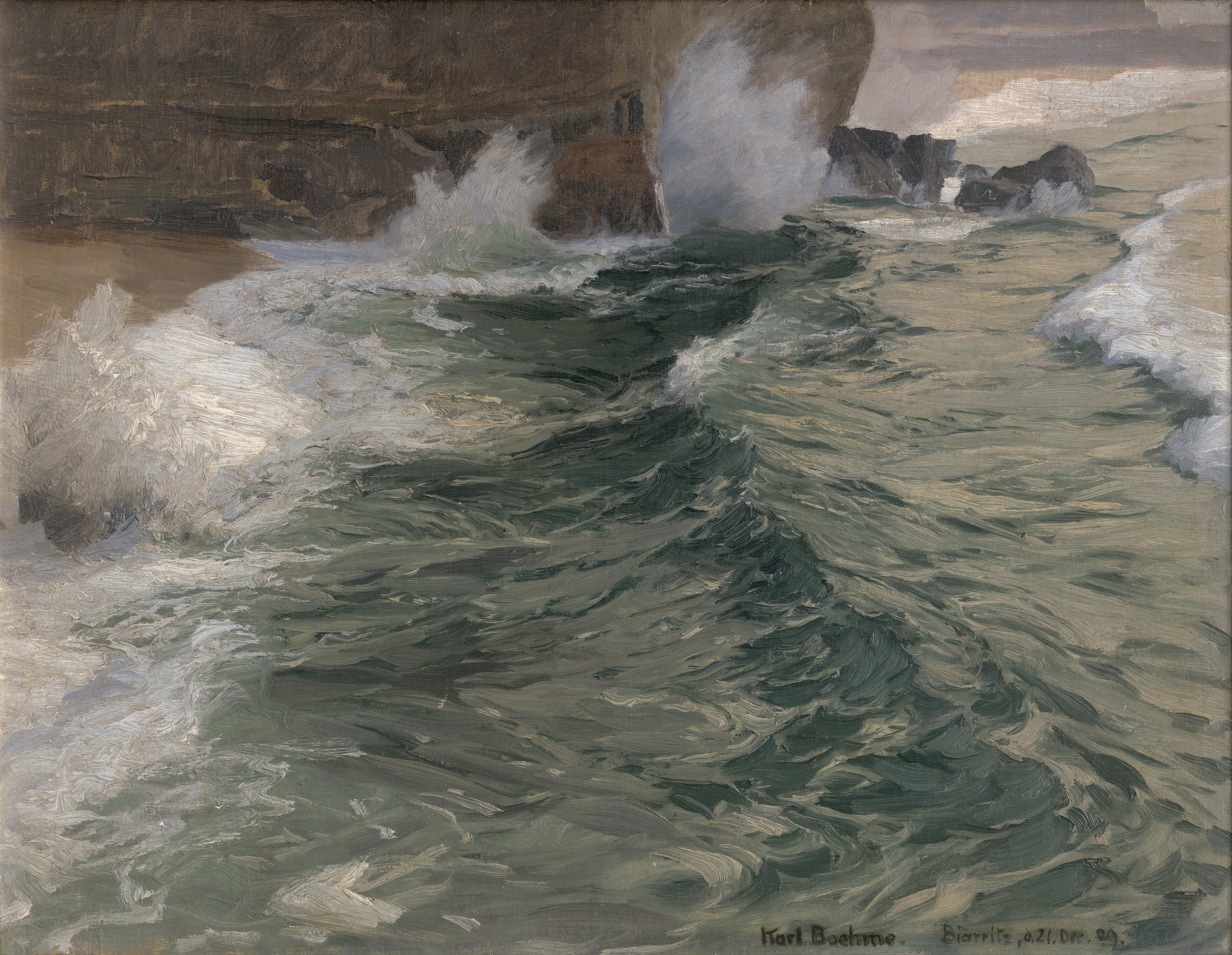 Öl auf Leinwand, auf Platte kaschiert. 43 x 55 cm. Am Unterrand signiert, datiert und bez. "Karl Boehme. Biarritz, d. 21. Dec. [19]09".