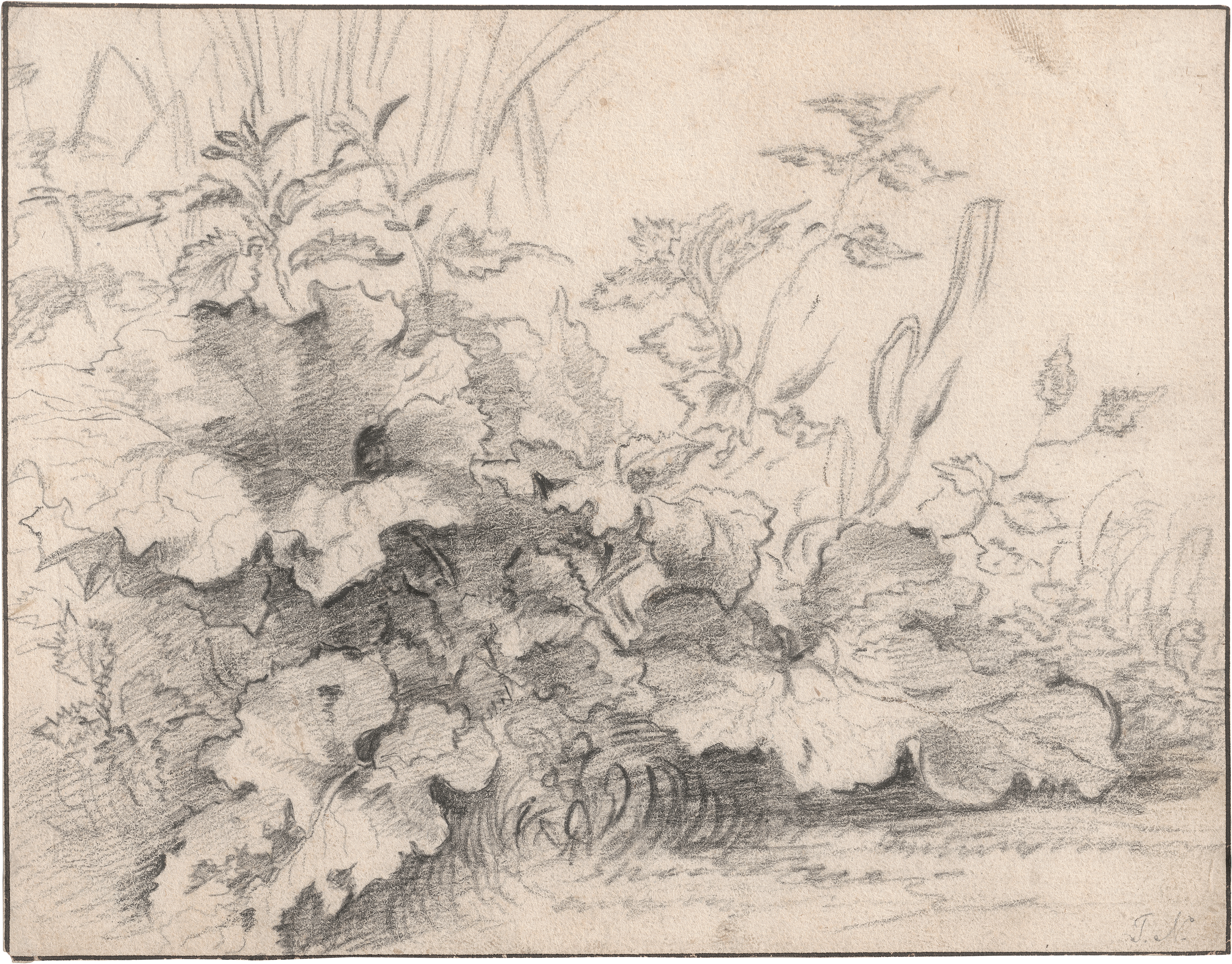 zugeschrieben. Terrainstudie mit großen Blattpflanzen.