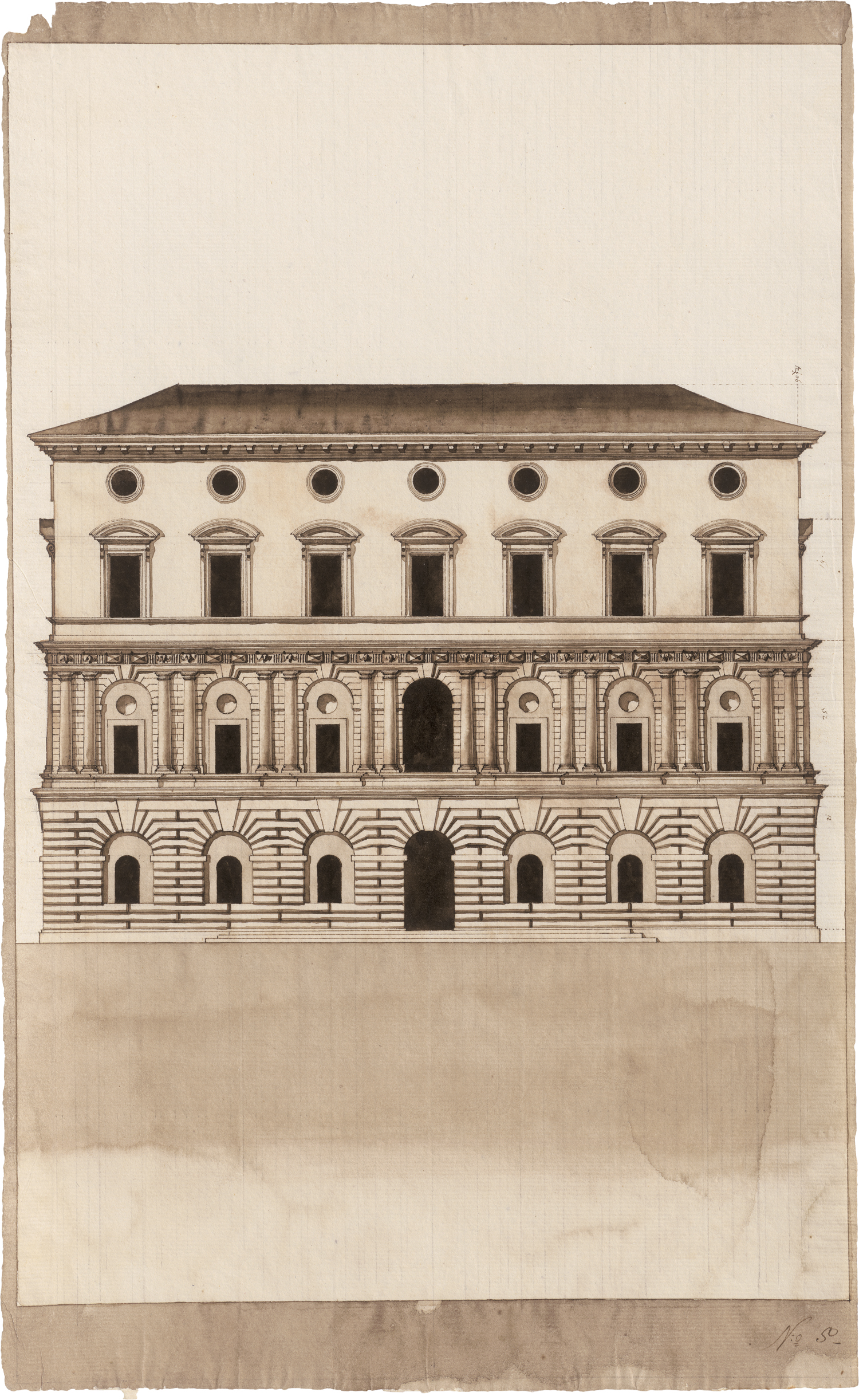 um 1800. Entwürfe zu fünf Palazzi und Villen im Stil der italienischen Renaissance.