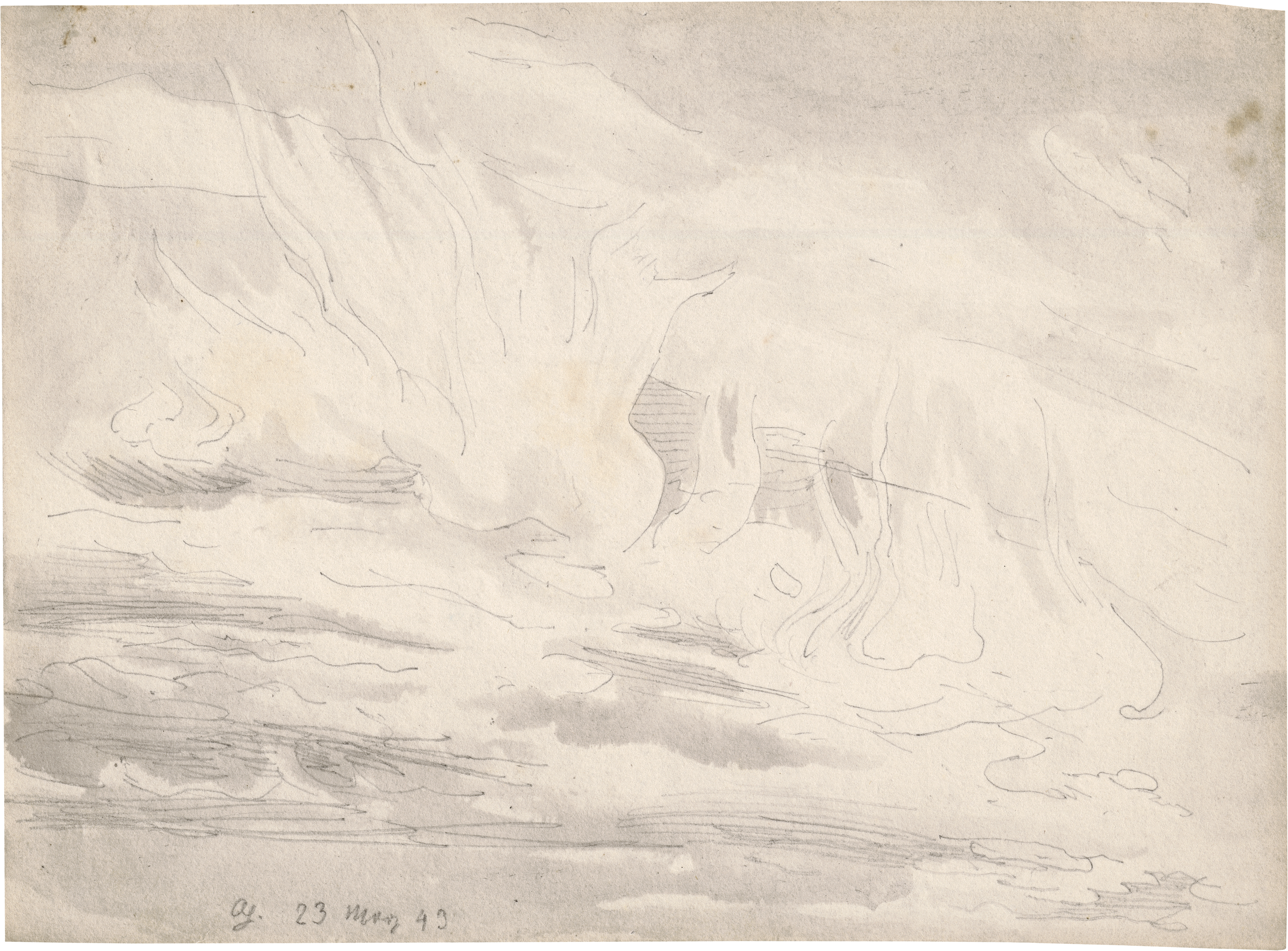 Bleistift, grau laviert. 14,4 x 18,9 cm. Unten links monogrammiert und datiert "CG 23 May [18]43".