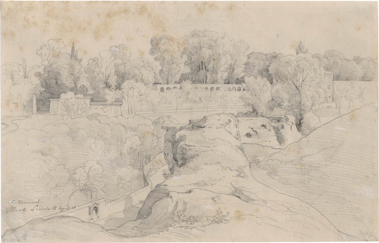 Bleistift auf Velin. 19 x 29,6 cm. Unten links signiert, datiert und eigenh. bez. "C. Hummel Monte Pincio 18. April [18]43".