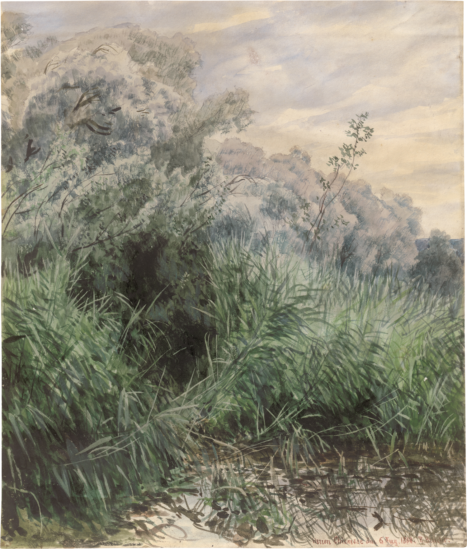 (1842 Morges - 1921 Darmstadt)"Herren Chiemsee": Schilfbewachsenes Ufer