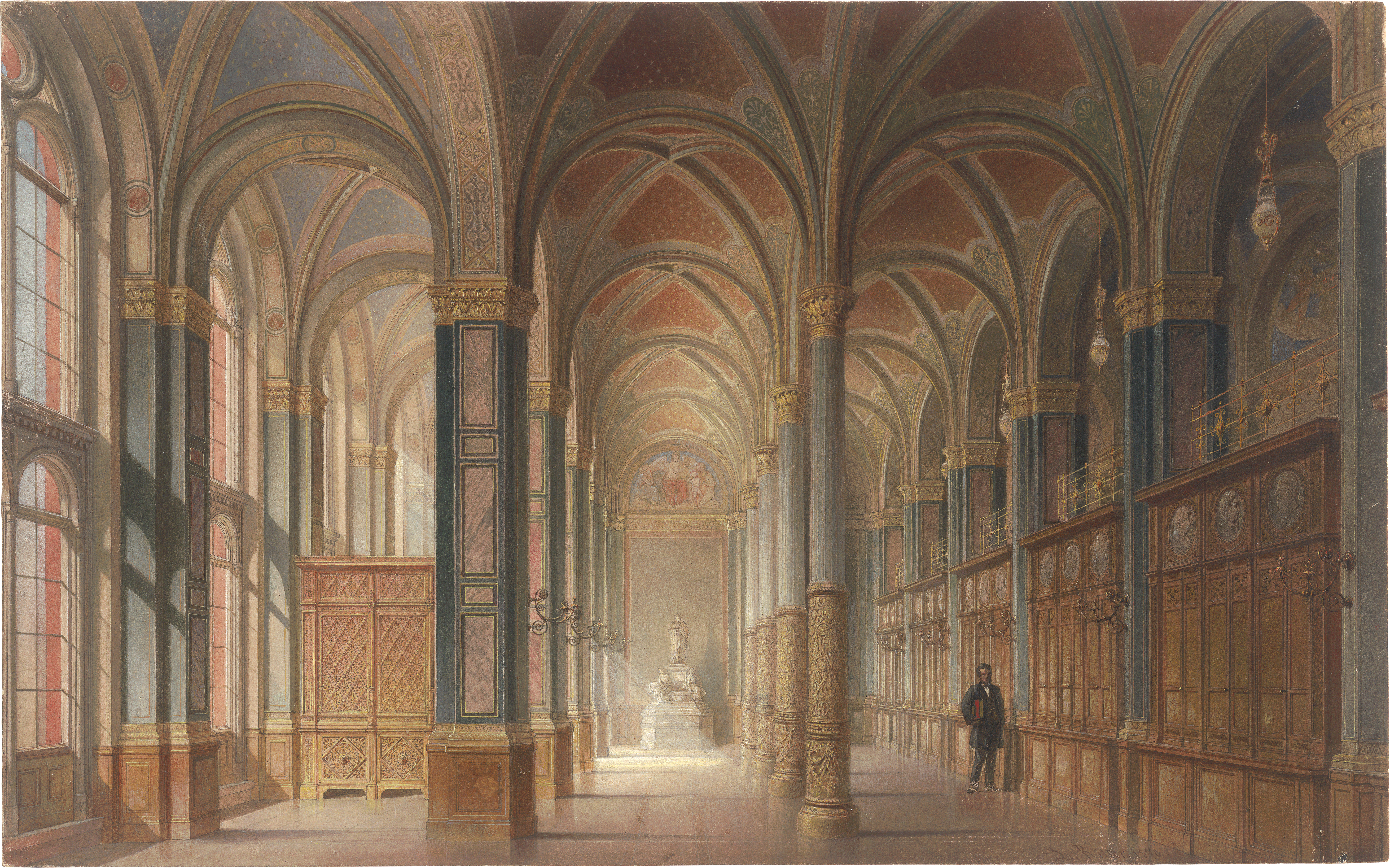 (1832-1921, Nürnberg)Blick in die Bibliothek (Säulensaal) im Roten Rathaus in Berlin