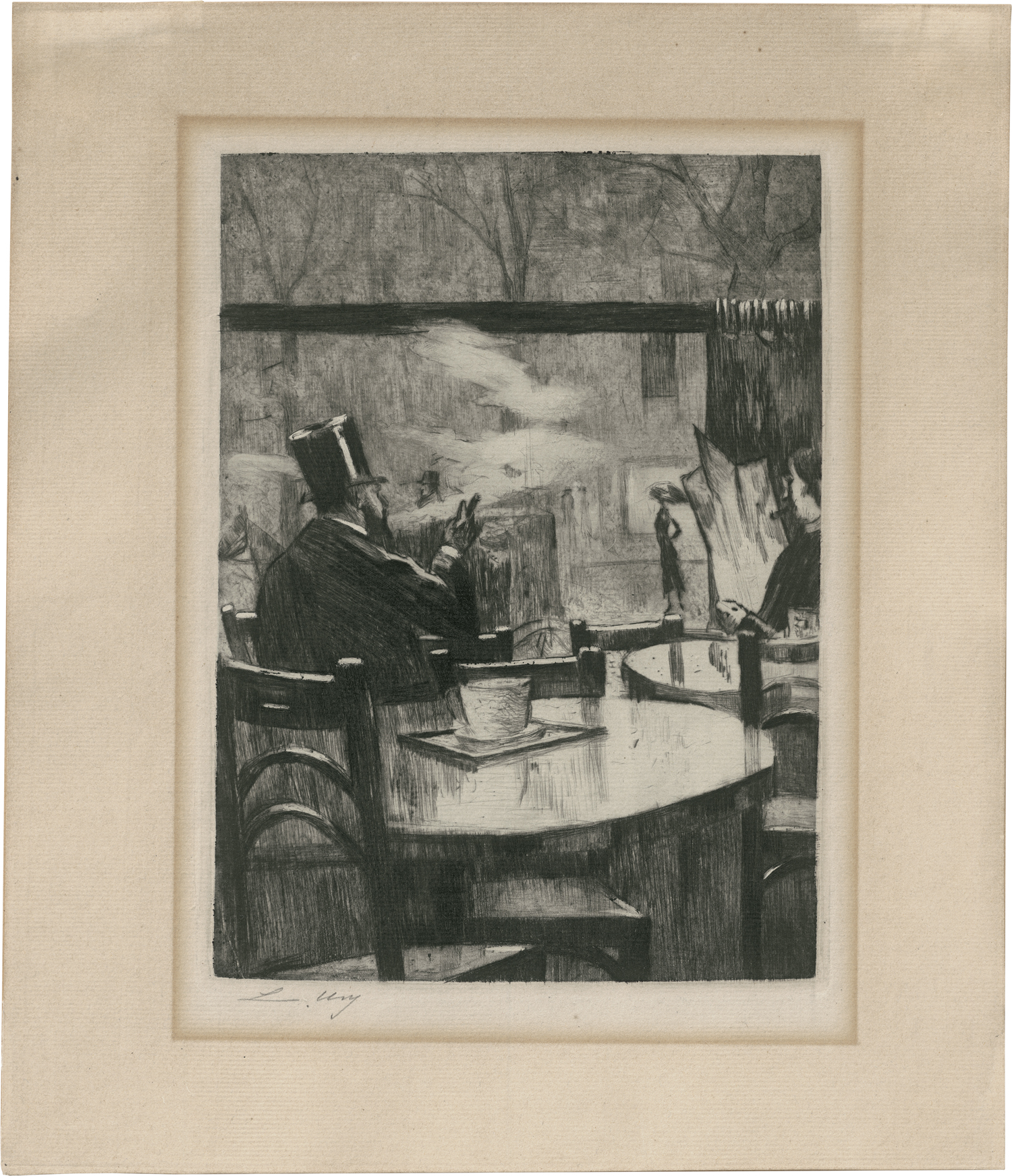 (1861 Birnbaum - 1931 Berlin)Herr mit Zylinder vor einem Kaffeehausfenster - in Rückenansicht