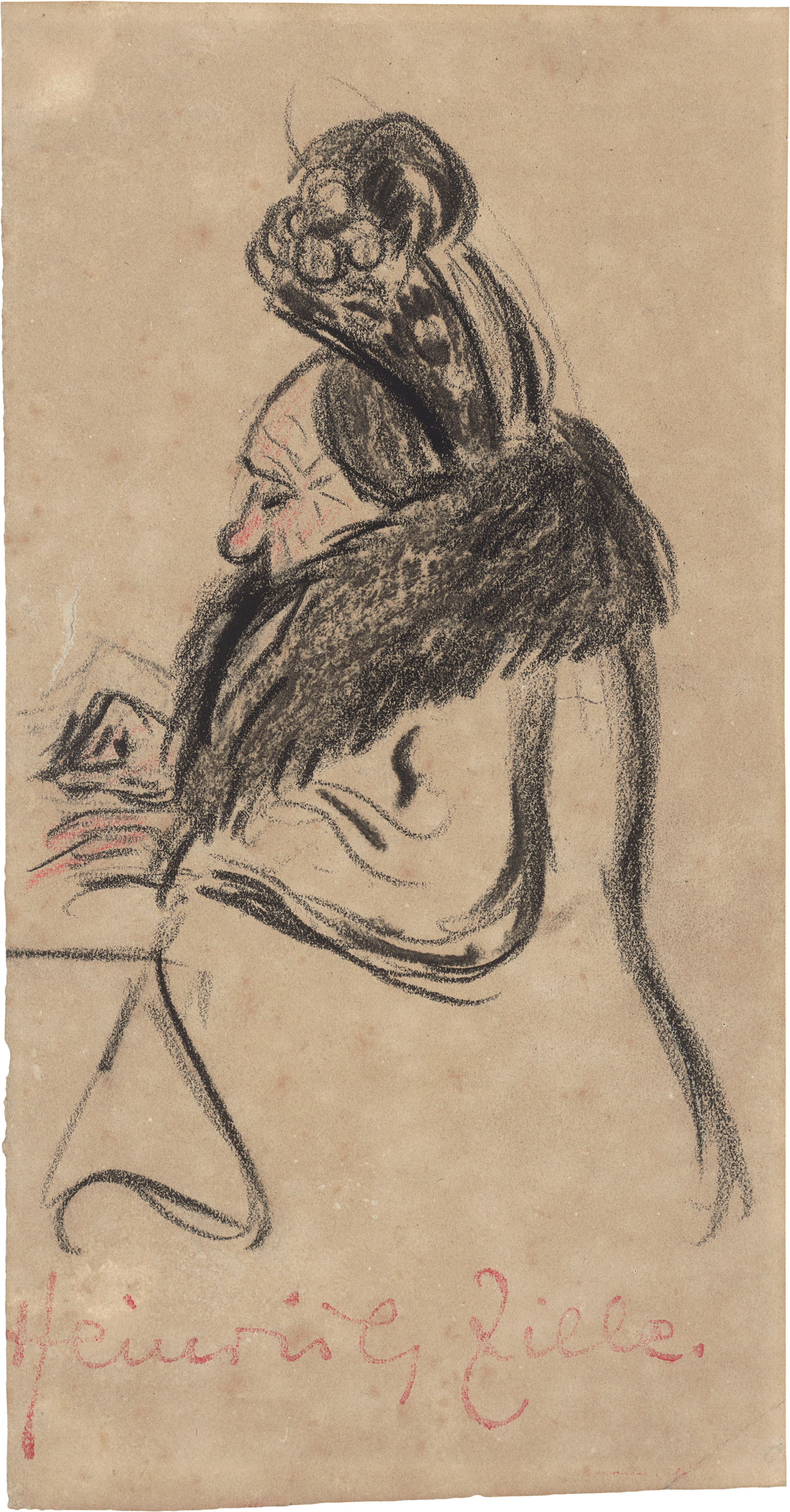 Kreide in Schwarz und Rot auf bräunlichem Velin.
