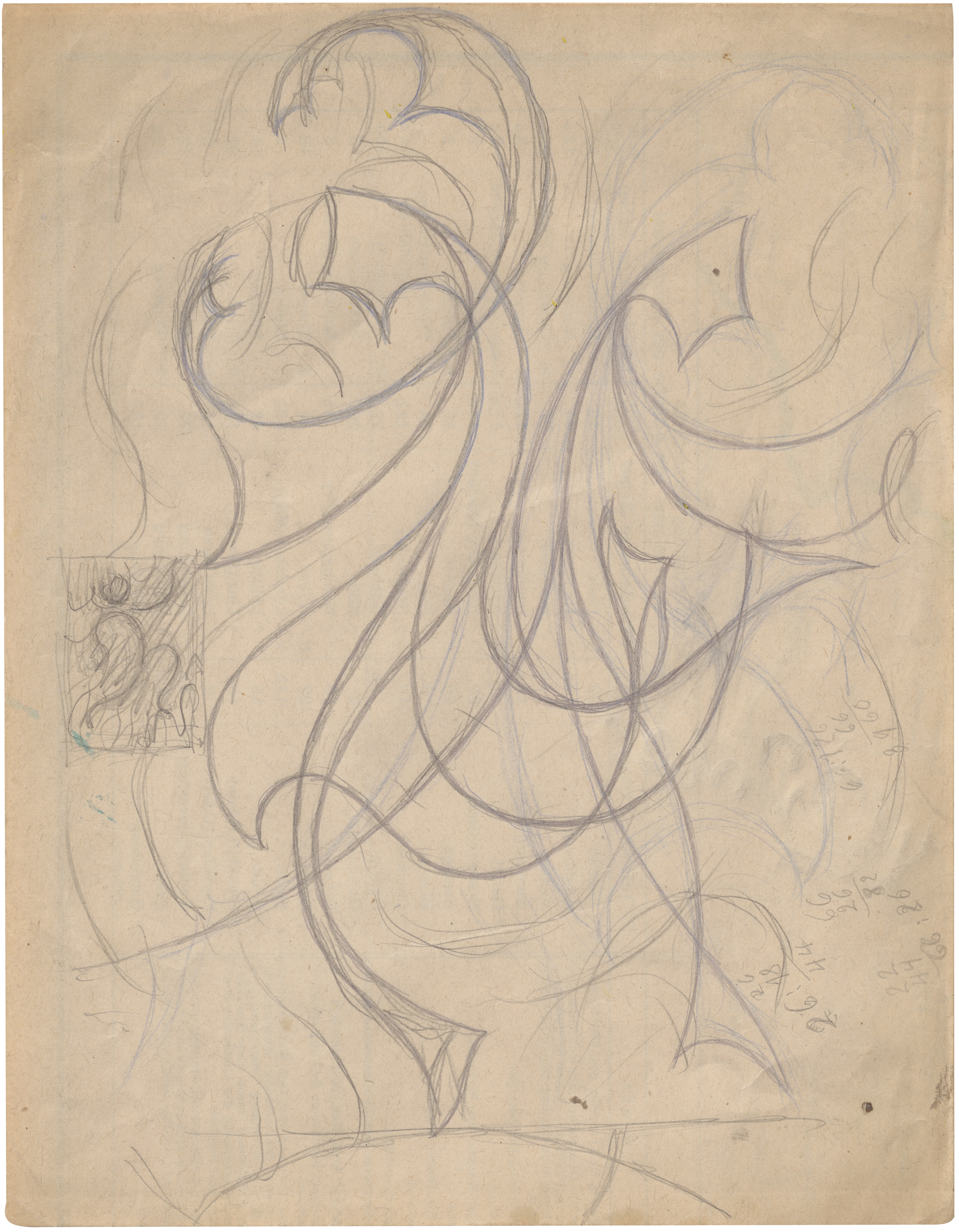 Bleistift und Farbstift in Blau auf Makulaturpapier. Wohl um 1924.